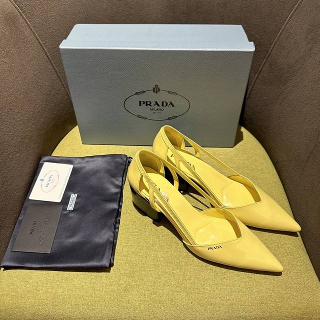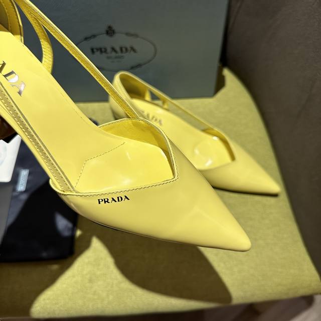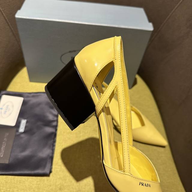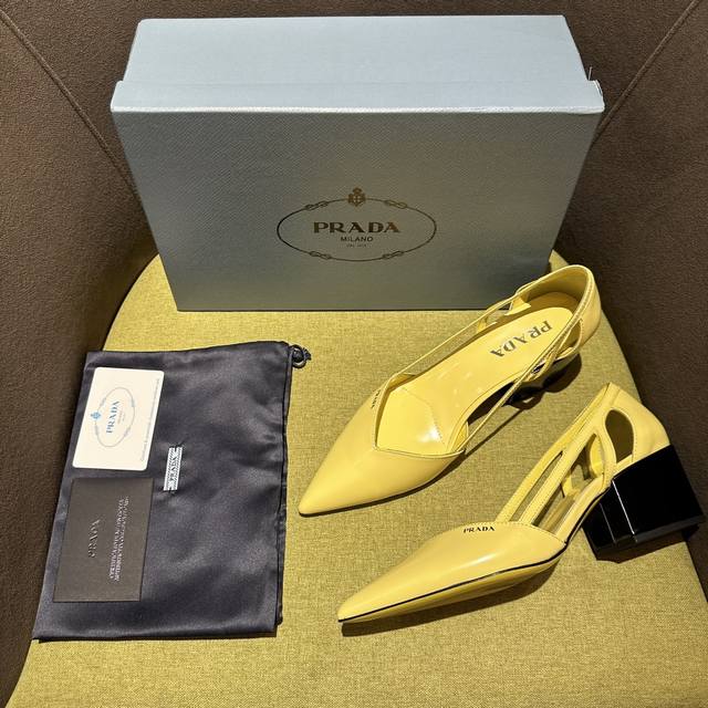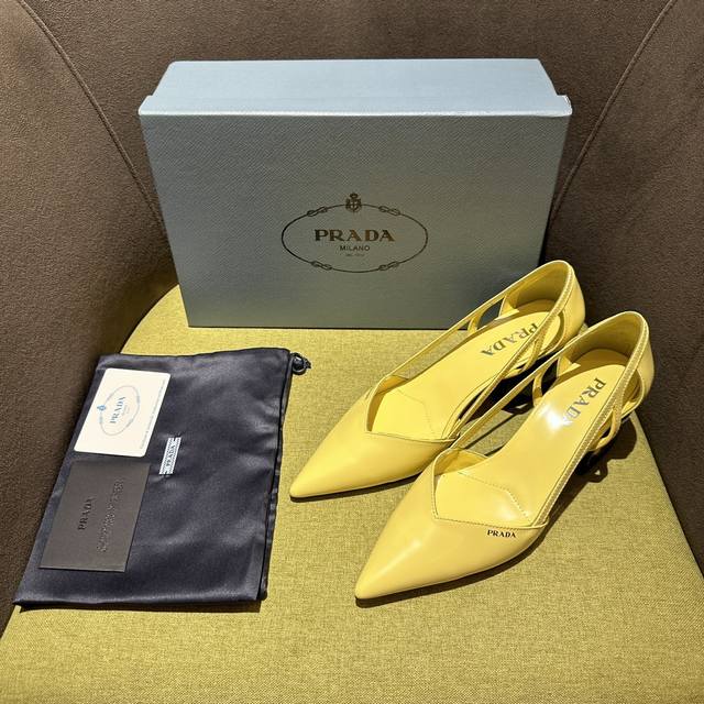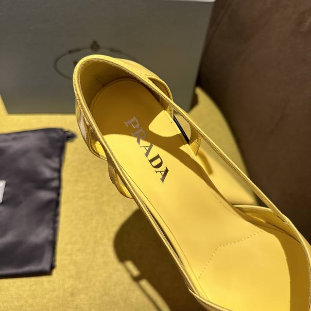 prada普拉达 Fw24走秀款 这款缎面高跟鞋融合昔日优雅风格与当代经典元素,以锥形线条与现代主义细节重新演绎1950年代廓形。