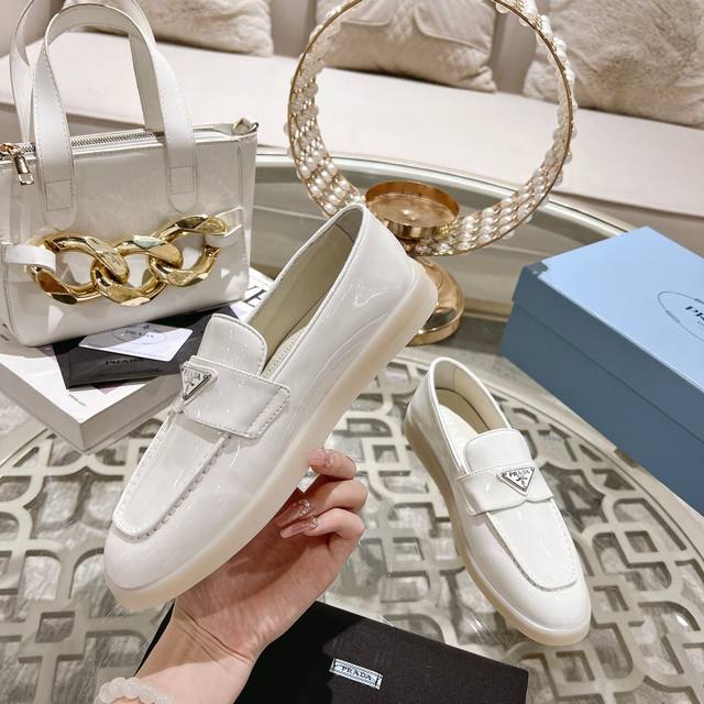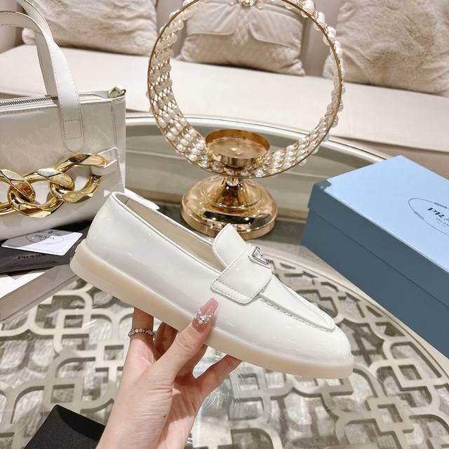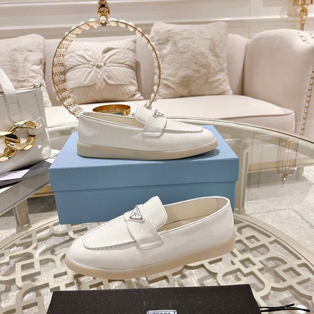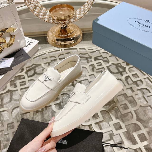 prada 普拉达春夏新款一脚蹬乐福鞋! 金属三角形徽标展现品牌标志,上脚无敌舒适的潮牌系列! 原版一致 面料进口开边珠牛皮和牛反绒,内里羊皮轻盈防滑Tpu耐磨大底 35-40M男38~100 ,男240