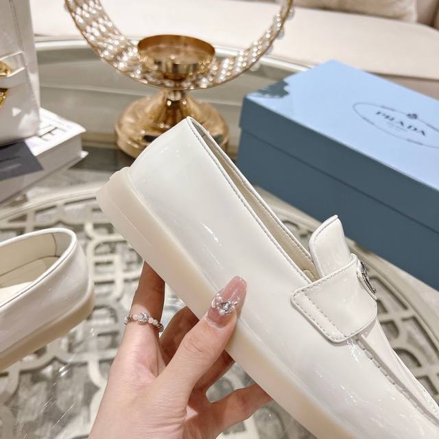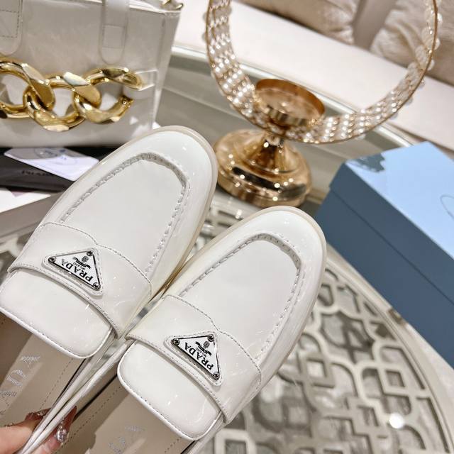 prada 普拉达春夏新款一脚蹬乐福鞋! 金属三角形徽标展现品牌标志,上脚无敌舒适的潮牌系列! 原版一致 面料进口开边珠牛皮和牛反绒,内里羊皮轻盈防滑Tpu耐磨