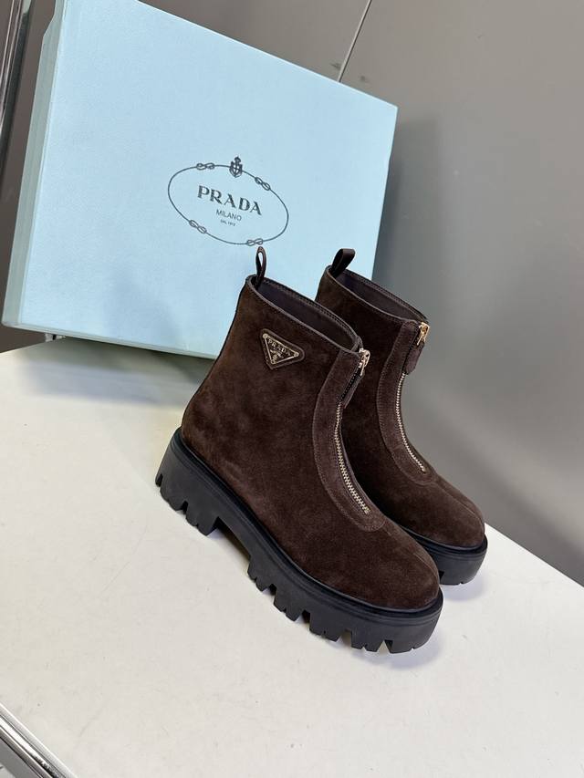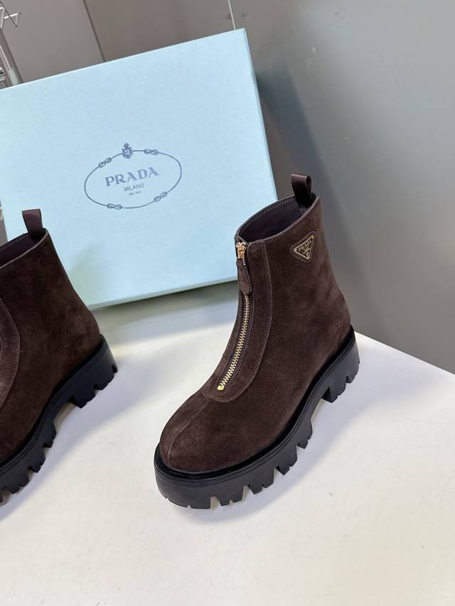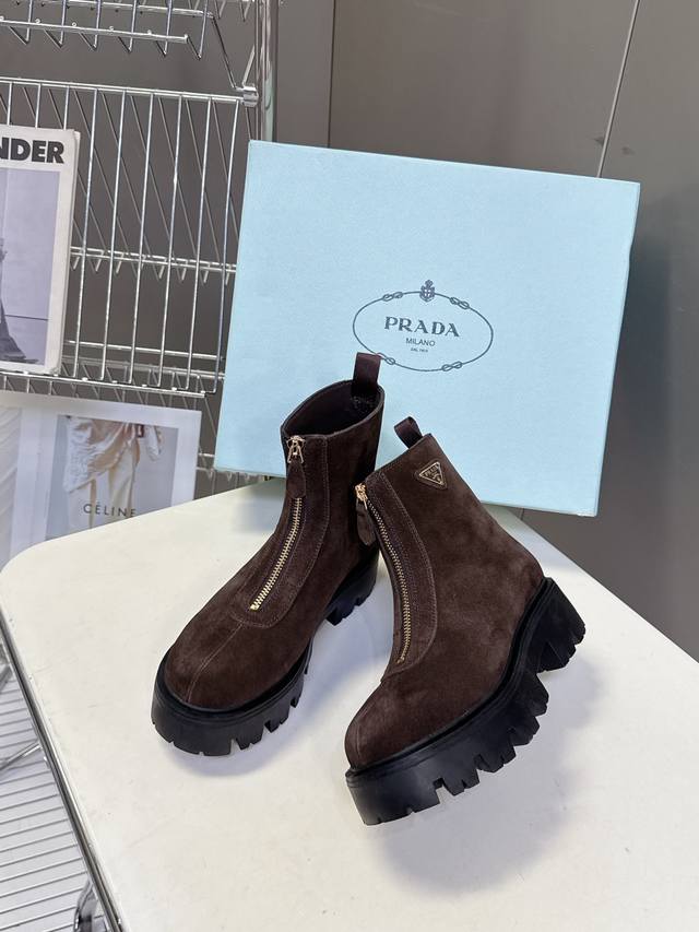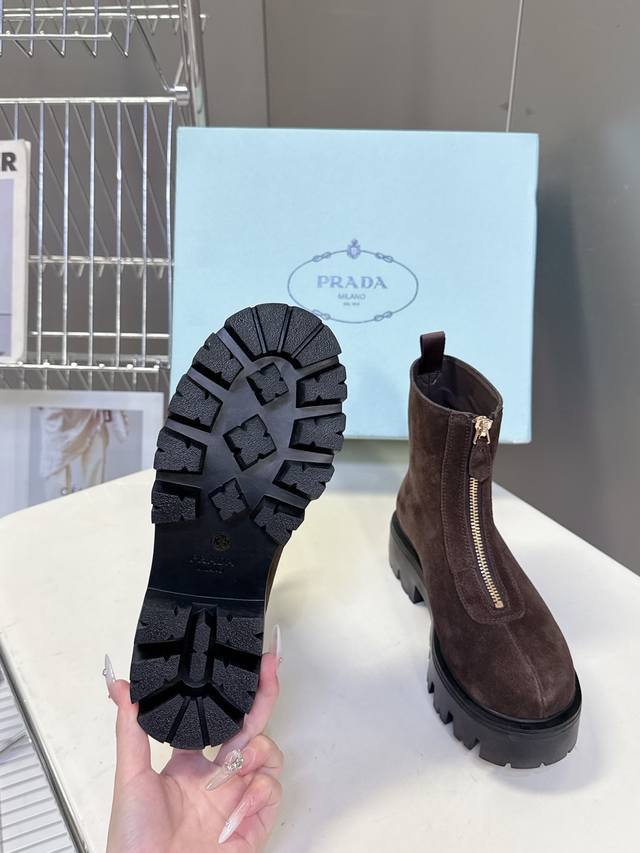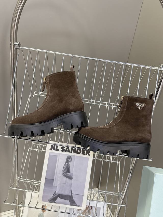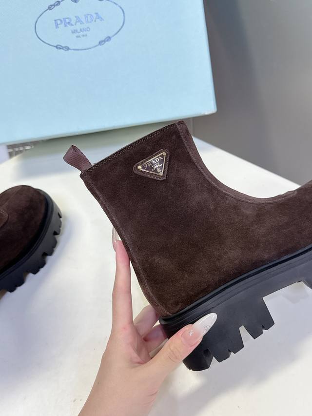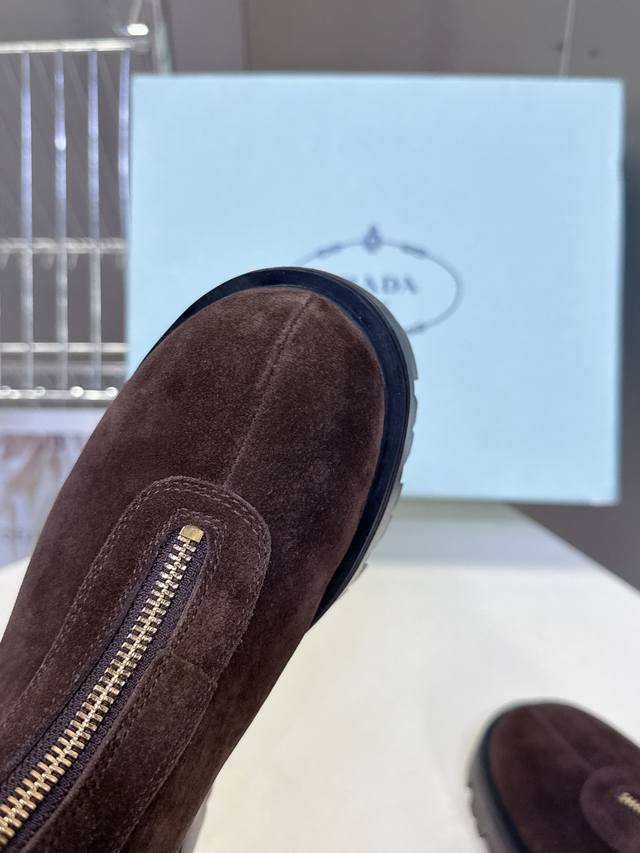 prada 普拉达秋冬最新款三角标一脚蹬女靴