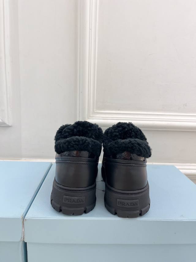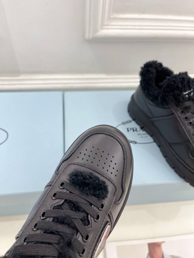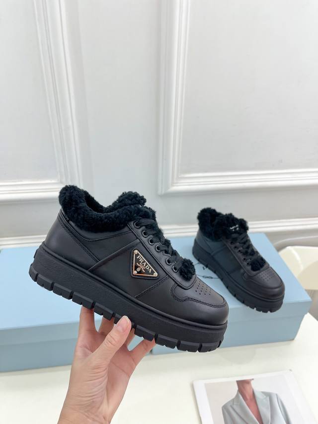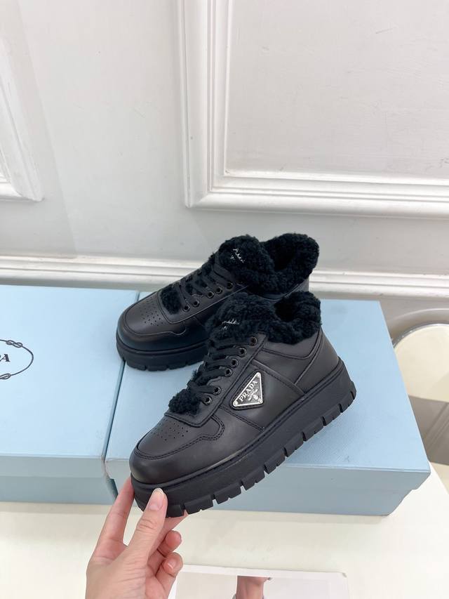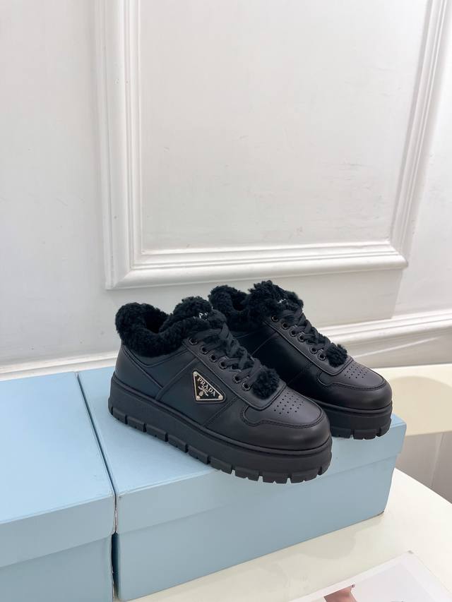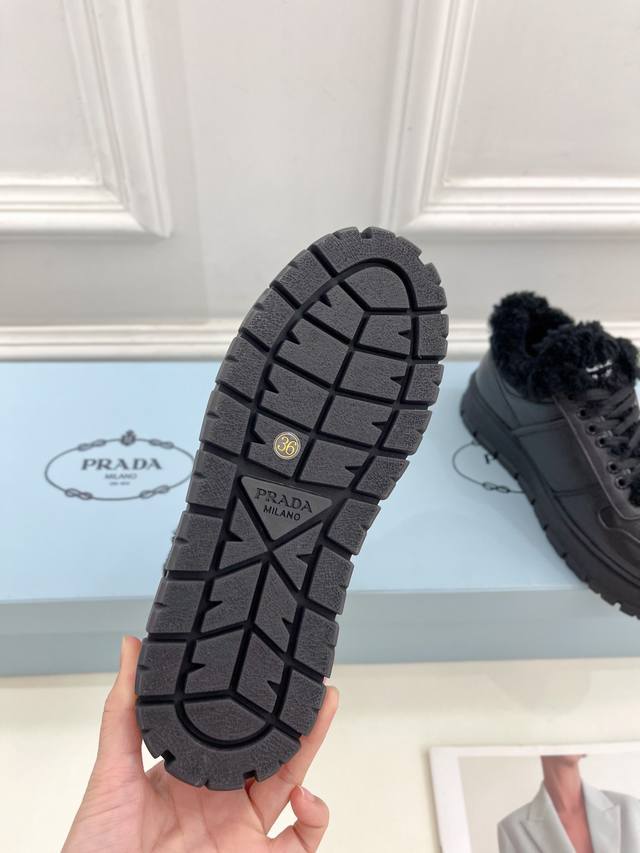 prada 普拉达 24 专柜走秀款秋冬新款系带厚底羊毛运动鞋 鞋面:高定制麂皮 开边珠 牛皮 内里:进口羊毛里 大底:原版开模大底 鞋码: 35-39 34、