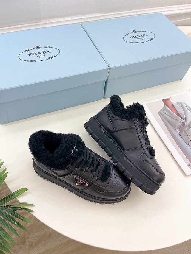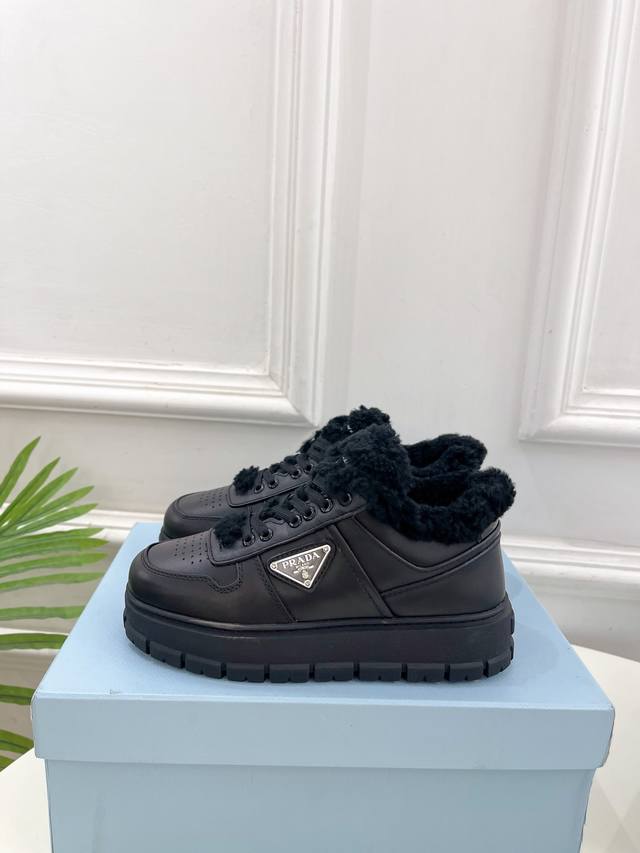 / prada 普拉达 24 专柜走秀款秋冬新款系带厚底羊毛运动鞋 鞋面:高定制麂皮 开边珠 牛皮 内里:进口羊毛里 大底:原版开模大底 鞋码: 35-39 34、