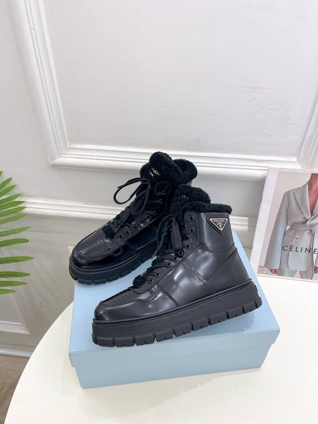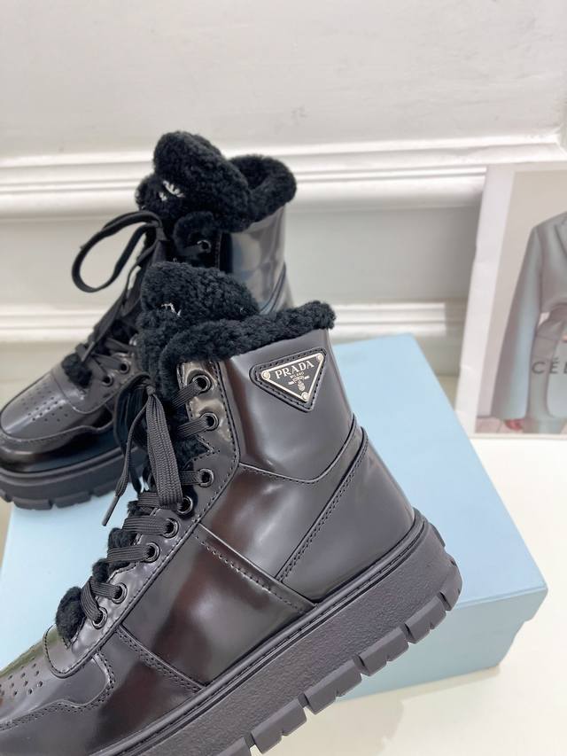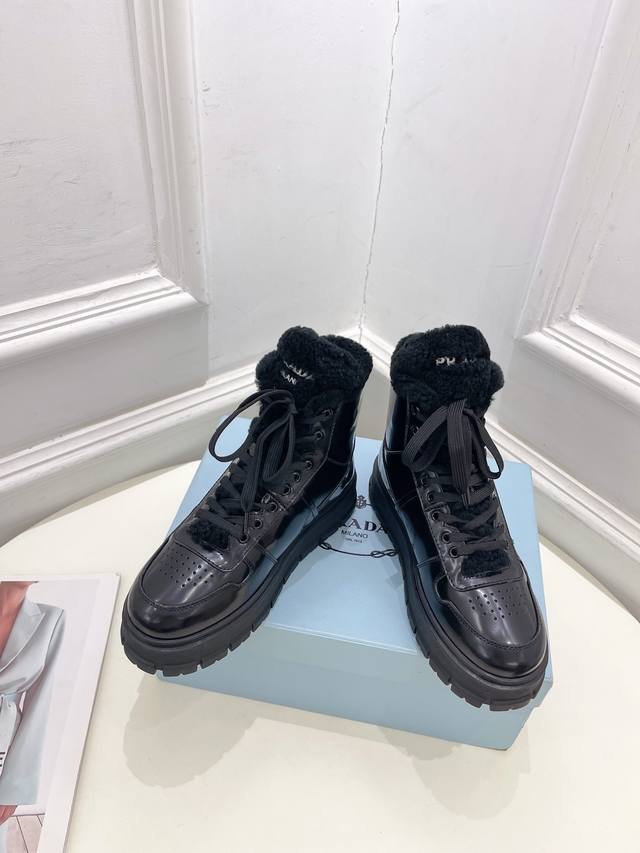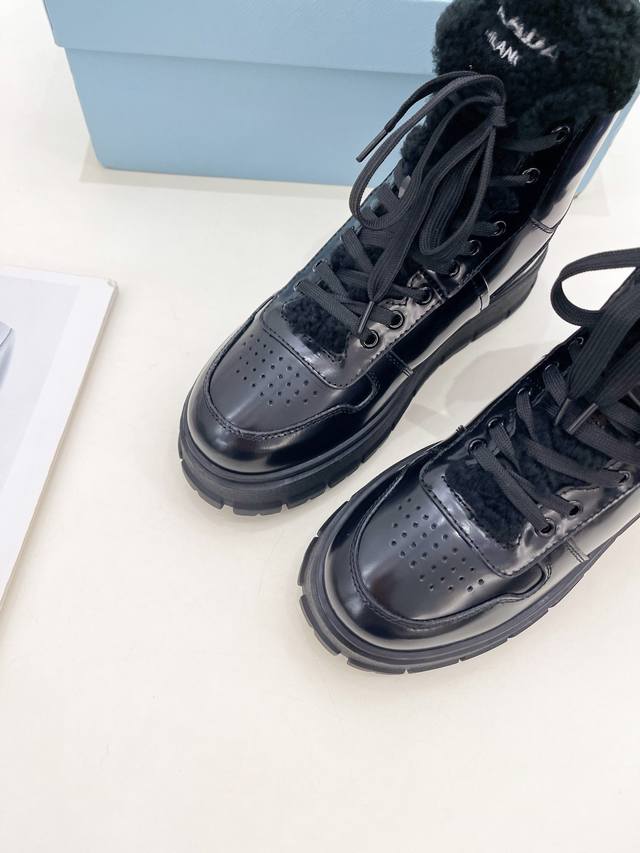 prada 普拉达 24 专柜走秀款秋冬新款系带厚底羊毛高帮运动鞋 鞋面:高定制麂皮 开边珠 牛皮 内里:进口羊毛里 大底:原版开模大底 鞋码: 35-39 3