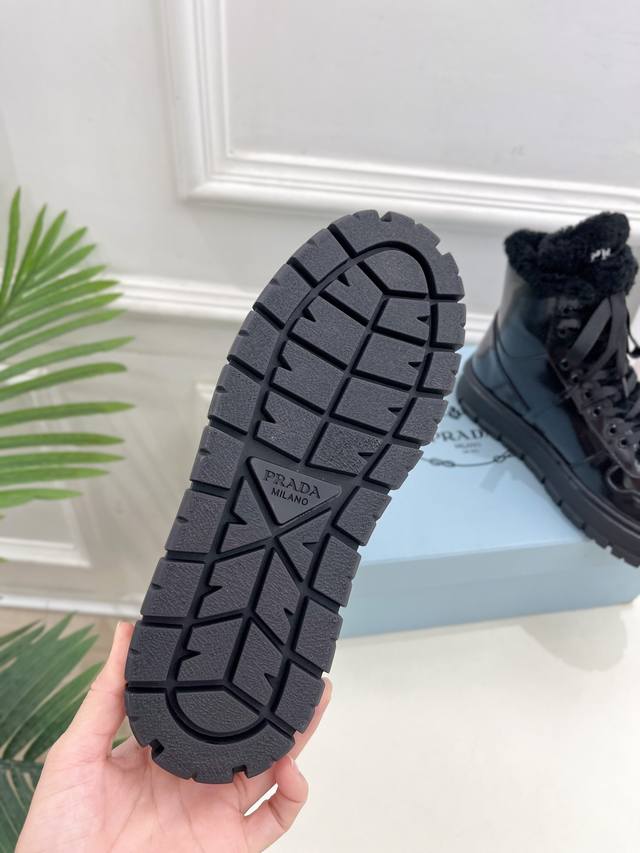 / prada 普拉达 24 专柜走秀款秋冬新款系带厚底羊毛高帮运动鞋 鞋面:高定制麂皮 开边珠 牛皮 内里:进口羊毛里 大底:原版开模大底 鞋码: 35-39 3