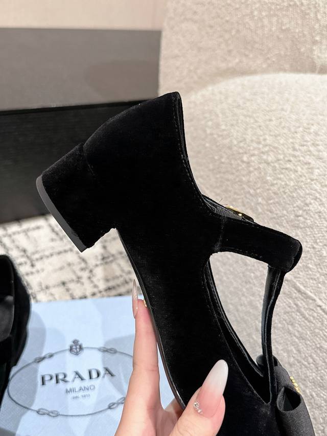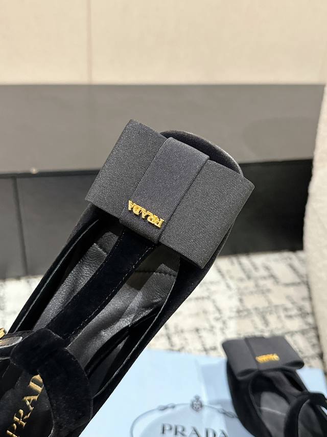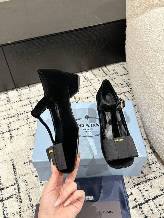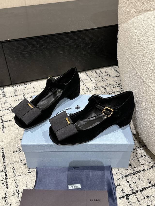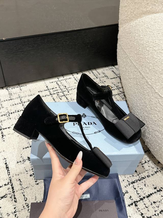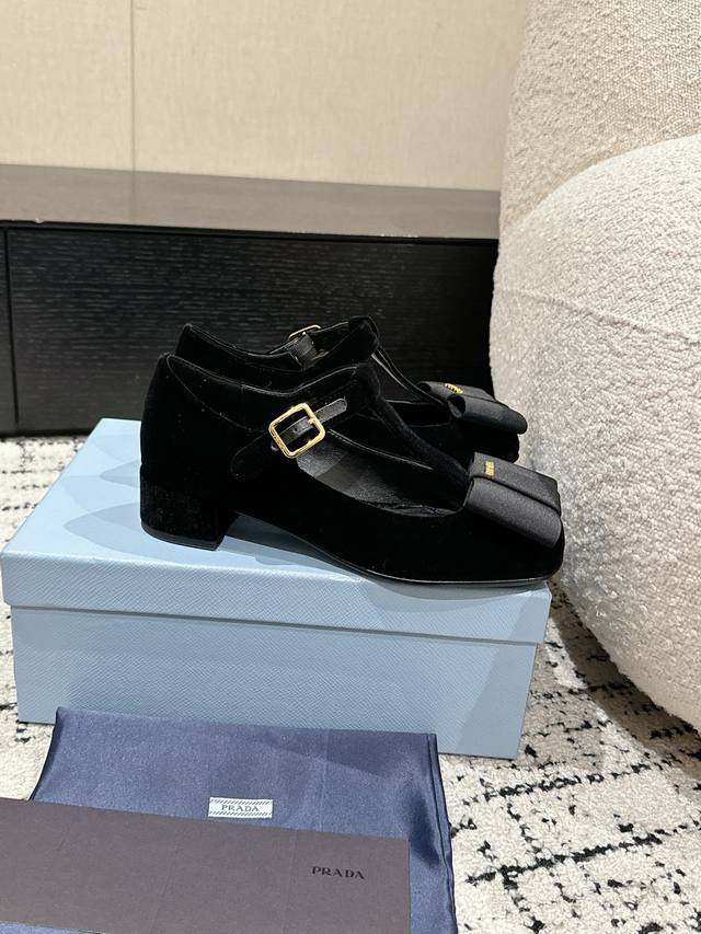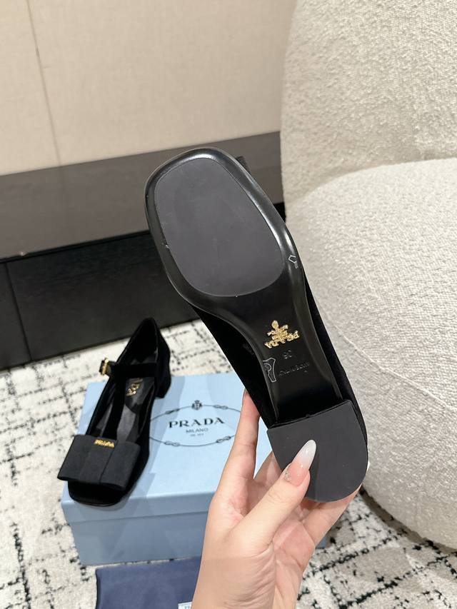 Prada 普拉达 25 早春新款 粗跟圆头 蝴蝶结玛丽珍
