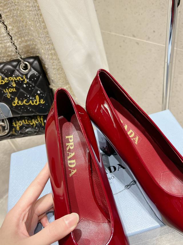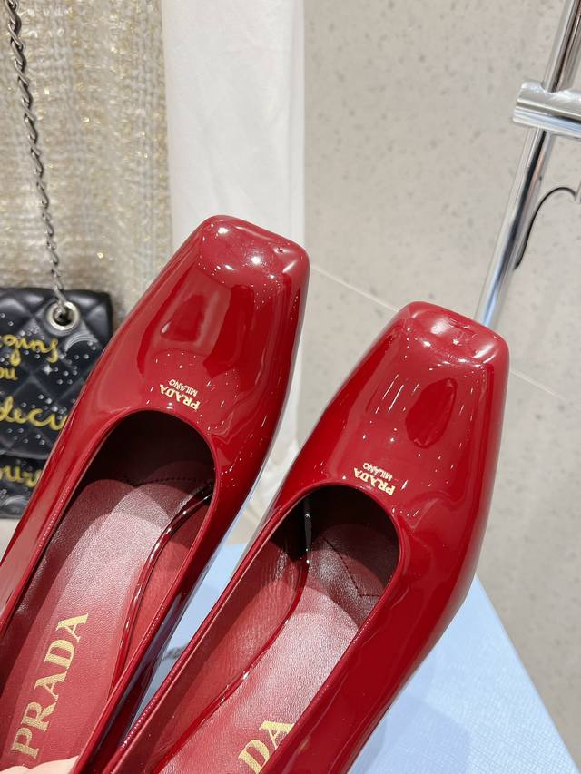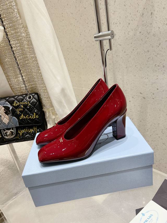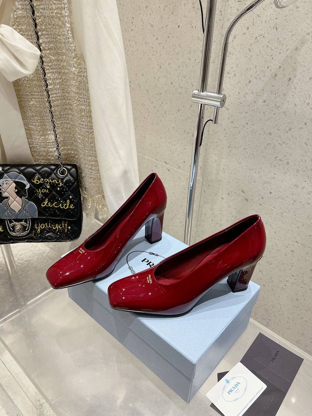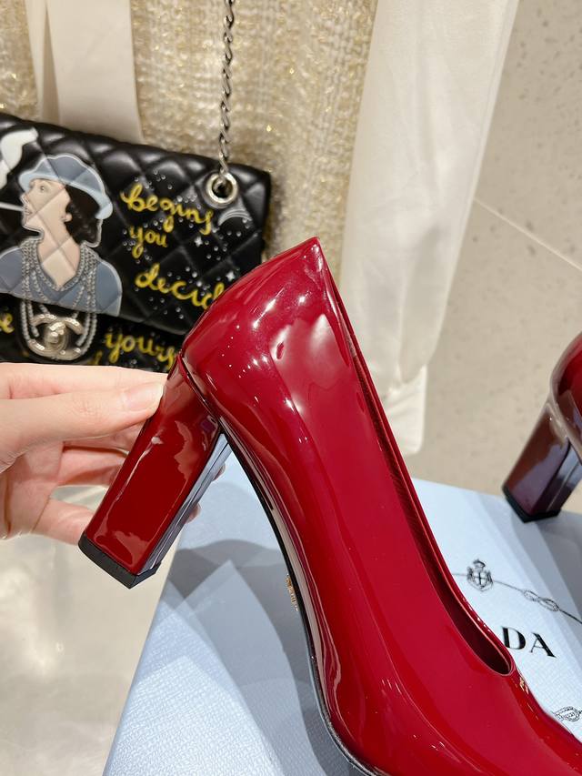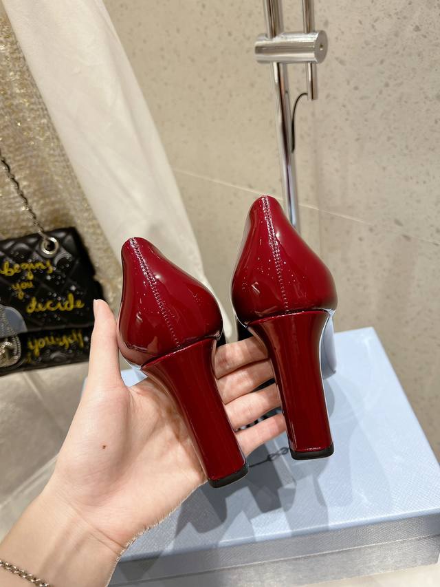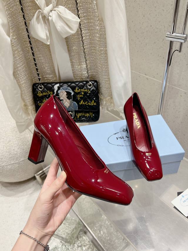 Prada 普拉达 25Ss早春新款 绝美方头粗跟高跟单鞋