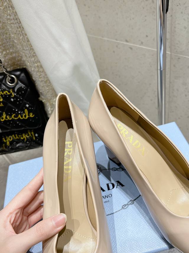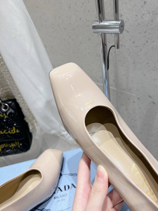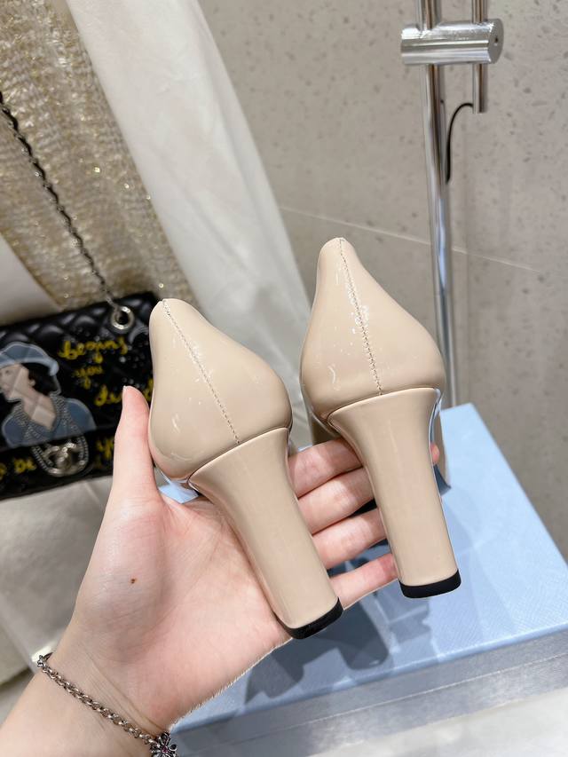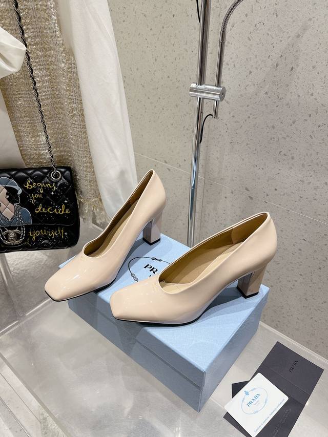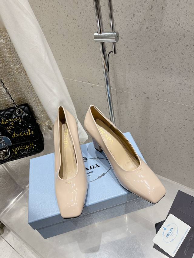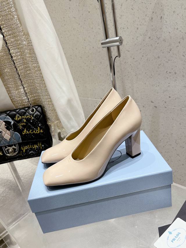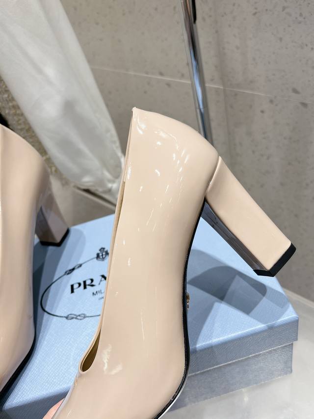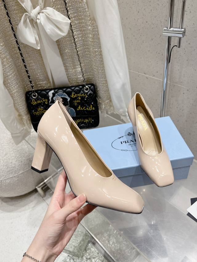 Prada 普拉达 25Ss早春新款 绝美方头粗跟高跟单鞋