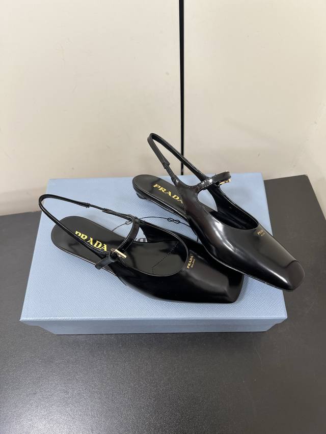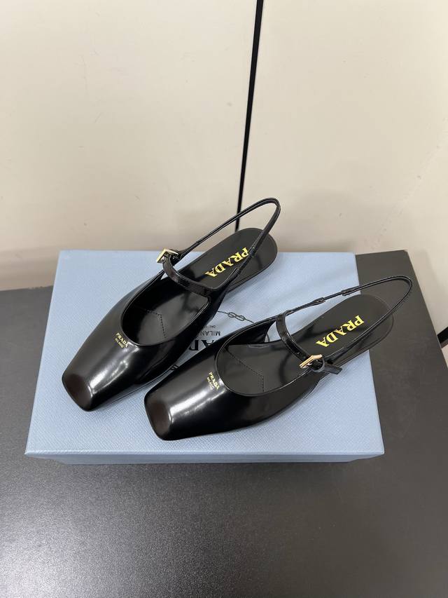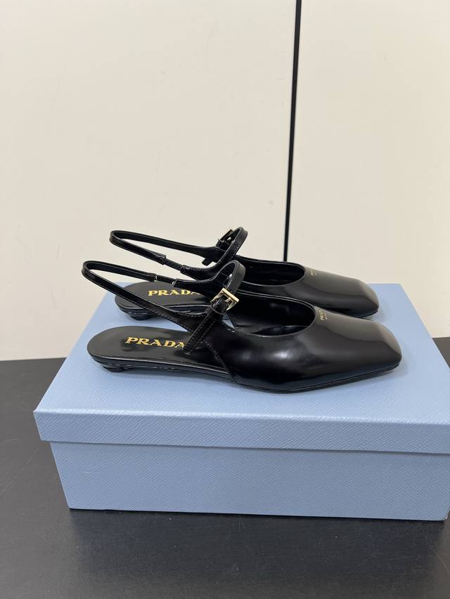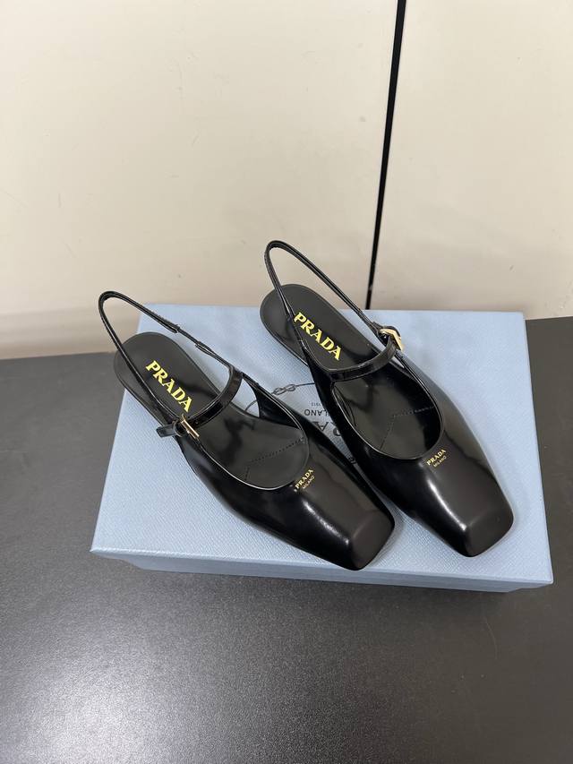 Prada 普拉达 25Ss 春夏新款 平跟方头后空凉鞋单鞋