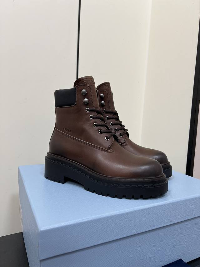 Prada |秋冬新品厚底系带马丁靴 P家复古新品女靴 秋天氛围感拉满 一年四季搭配都离不开靴子真的太好搭配啦 进口小牛皮 质感满满 细节最重要要 Size:3