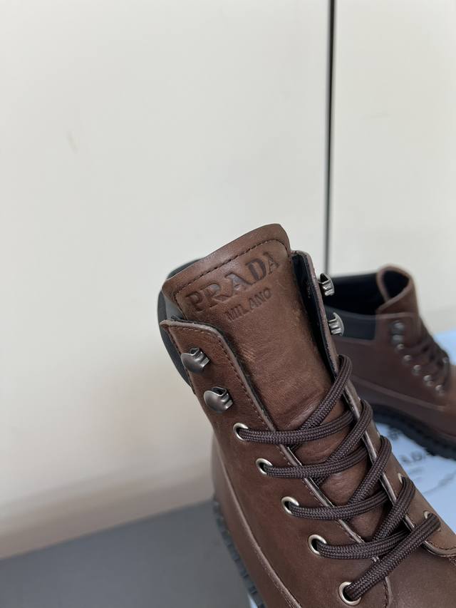/ Prada |秋冬新品厚底系带马丁靴 P家复古新品女靴 秋天氛围感拉满 一年四季搭配都离不开靴子真的太好搭配啦 进口小牛皮 质感满满 细节最重要要 Size:3