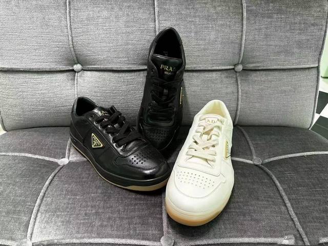 / 元 38-45 Prada 普拉达新款男士真皮运动鞋,市面最高版本 、欢迎任意对比!原版皮料质感极佳,超上档次!意大利进口胎羊网内里,可拆式垫!奢华用料、精细做