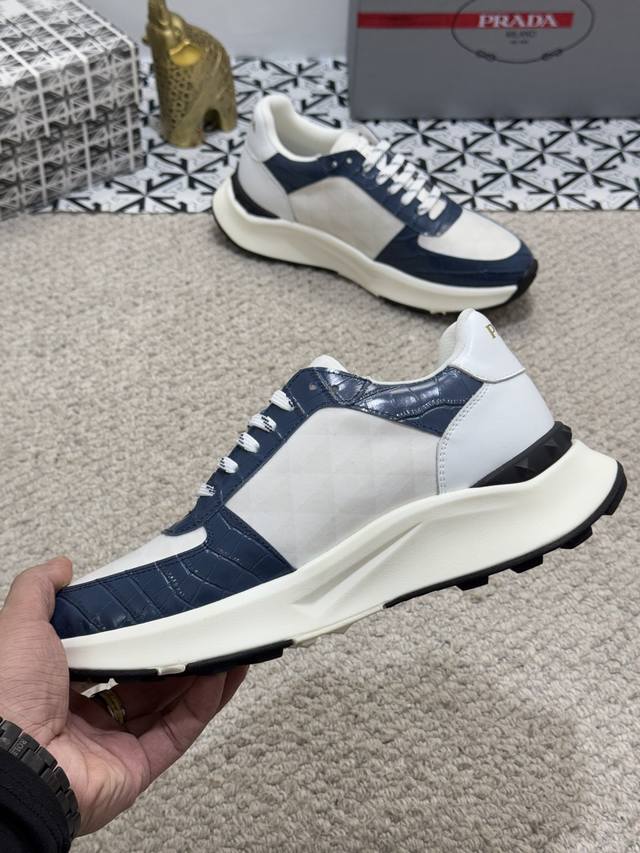 出价 实价 高端精品-普拉达~ 官网最新款上市了1:1复制,香港专柜同步,走秀同台;全部采用牛皮制造、网布内里,橡胶大底防滑耐磨;着脚舒适、款式耐看,做工精细,配以简洁利落的鞋楦,彰显男人的果敢和硬朗,商务休闲两不误,欢迎各位卖家上图大卖,可一件代发 Size:38-44 45定制