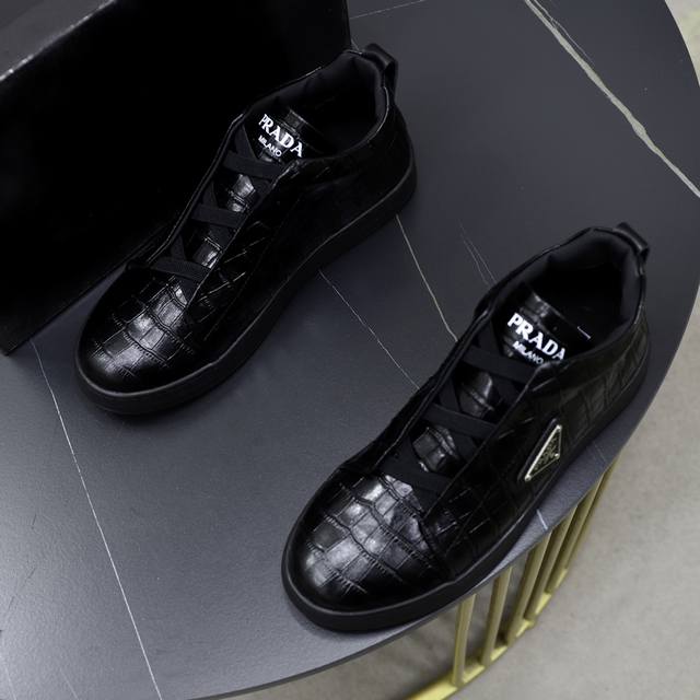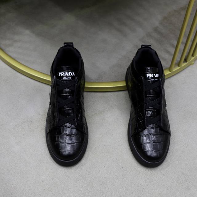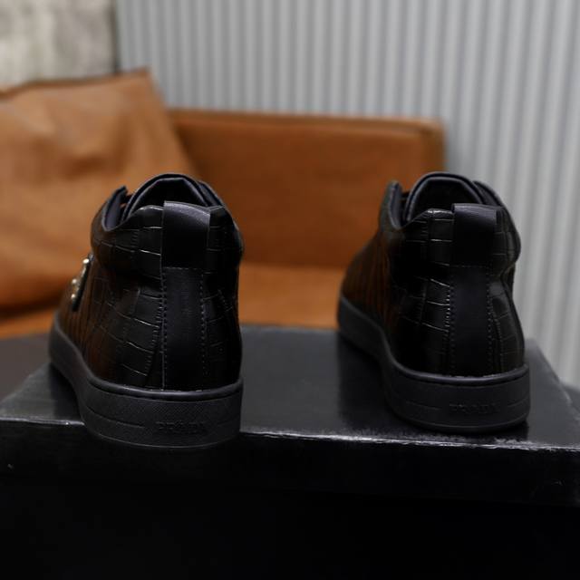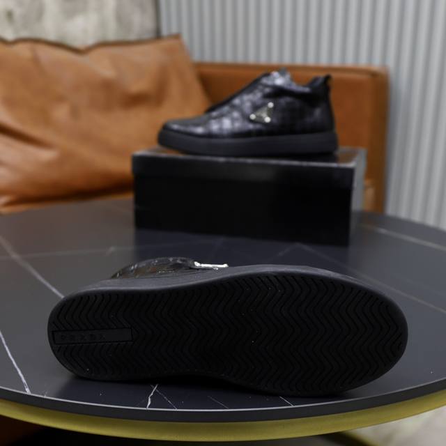 prad*普拉达2024春夏新品男士高端运动鞋,这款运动鞋时尚百搭,简洁现代,融合运动风格和精致细节。选用皮革材质打造,搭配...
