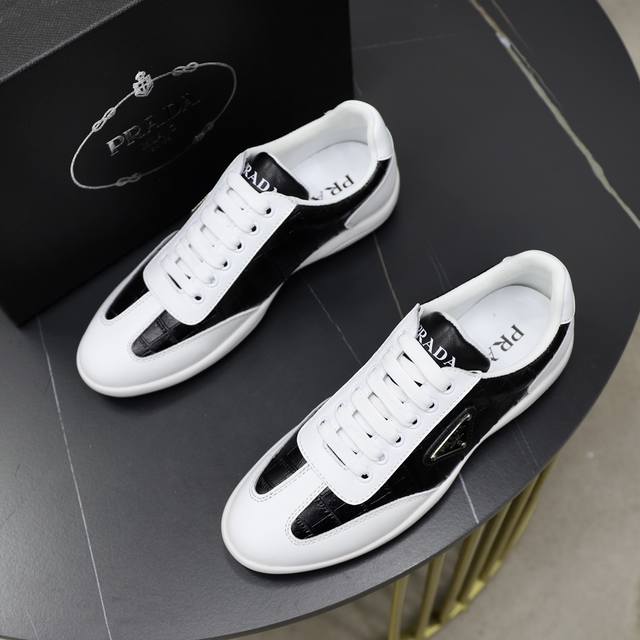 / 出厂价: 品牌:普拉达 标准码:38–44 45可订做 等级:官网同款 材料:原版牛皮面料 舒适羊皮内里 轻便耐磨大底 款式类别:男士时尚休闲鞋靴 跑步 运动鞋
