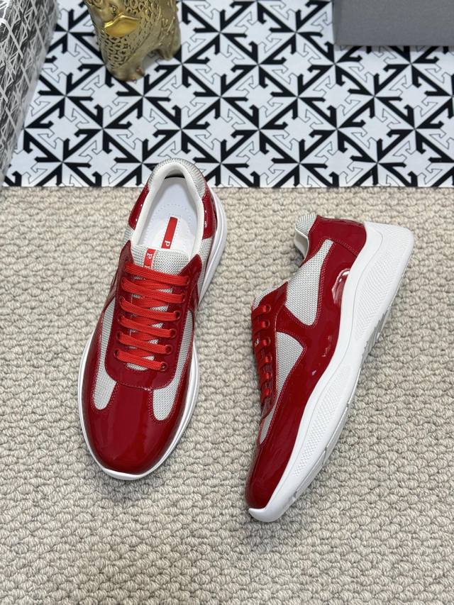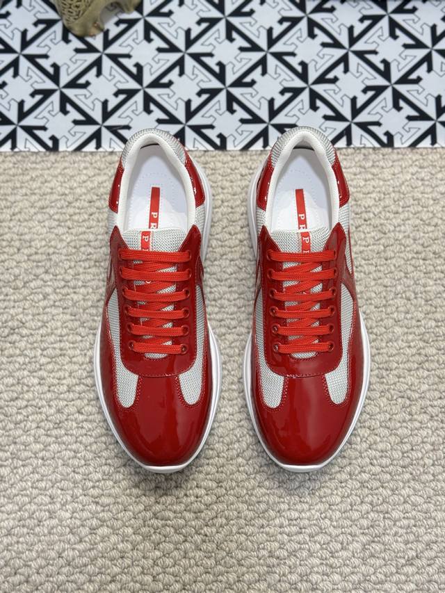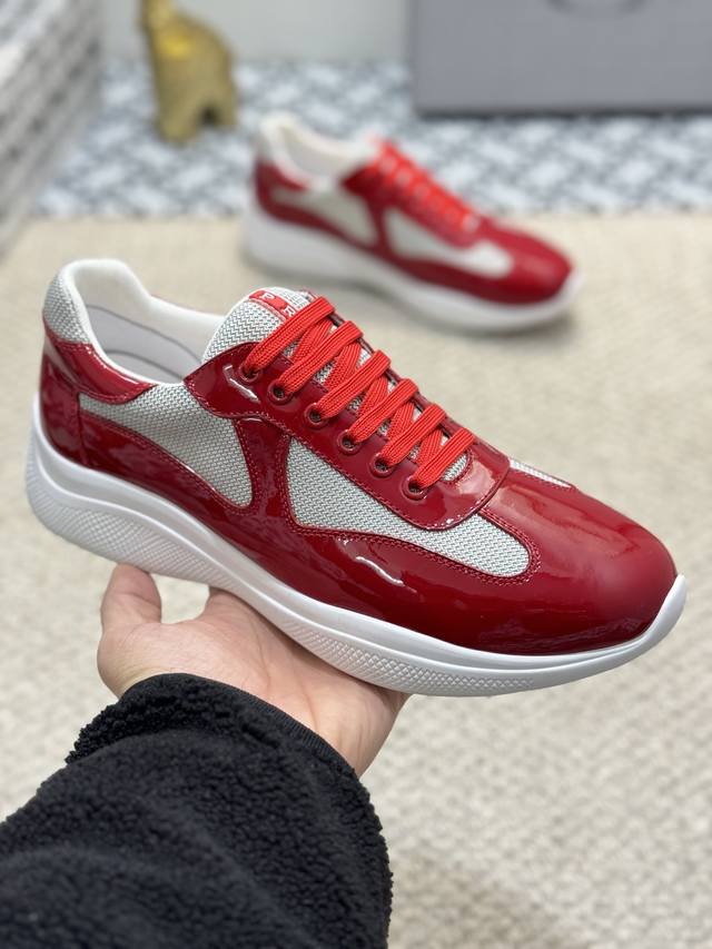 出厂价 实价 中高版 实价 原单精品-普拉达!要好货的看过来,高端品质!原版工厂楦型与专柜一,高品质出货牛漆皮拼接网面料,皮面油边工艺,内里:牛皮夹网,11复刻