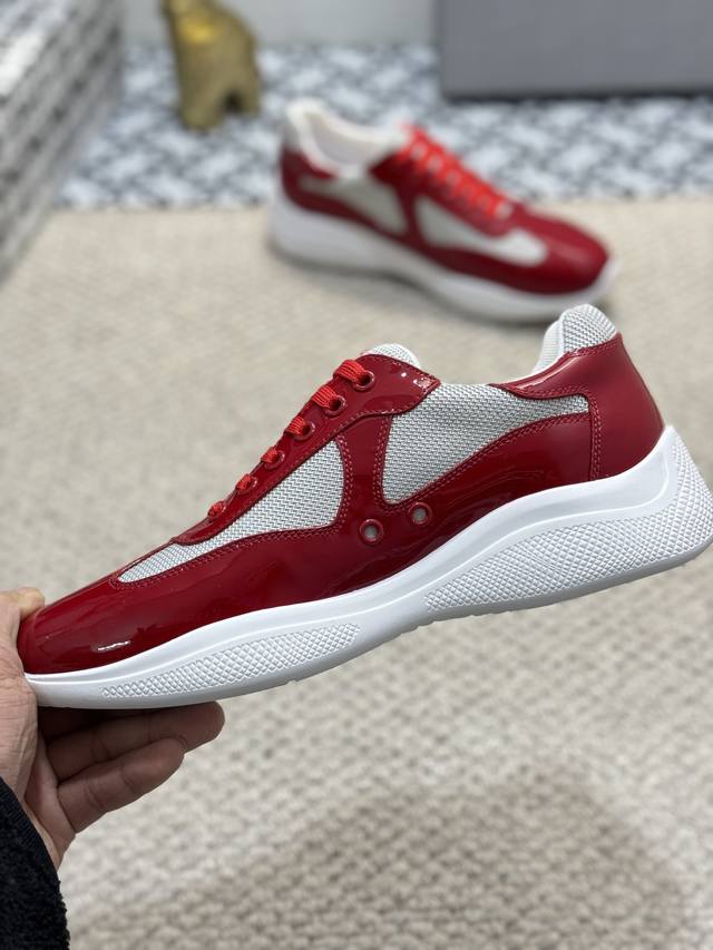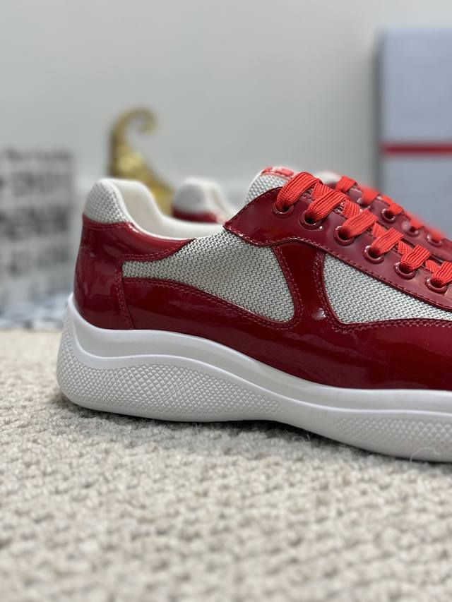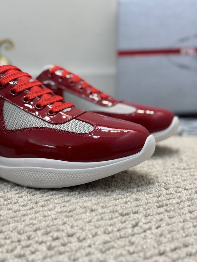 / 出厂价 实价 中高版 实价 原单精品-普拉达!要好货的看过来,高端品质!原版工厂楦型与专柜一,高品质出货牛漆皮拼接网面料,皮面油边工艺,内里:牛皮夹网,11复刻