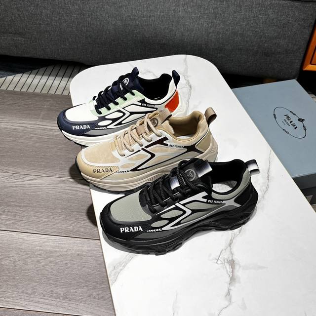 出厂价 普拉达新款休闲运动男鞋 潮流百搭, 版型简洁大气, 面料采用进口牛皮,透气内里,原版耐磨橡胶大底,独家新款,实物拍摄,三色可选,码数:38-44
