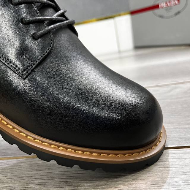 实价:Prad*普拉达 专柜爆款男鞋,官网1:1制作,进口牛皮面料拼接,牛皮内里 原厂特供原版底,38-45 45订做不退换