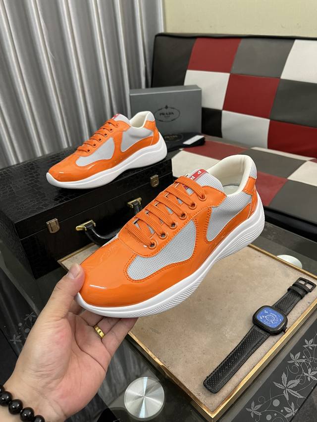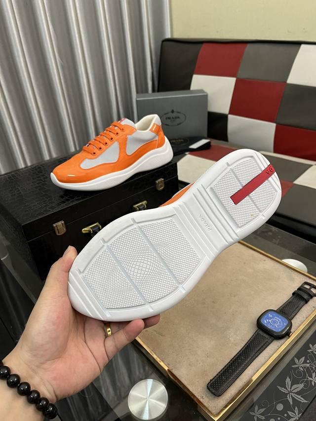 出厂价: 普拉达 男士经典休闲鞋,凉面皮配专用飞织材料,意大利进口水染小牛皮内里高档舒适,原版大底轻盈耐磨!纯手工制作,细节决定品质!Size:38-44
