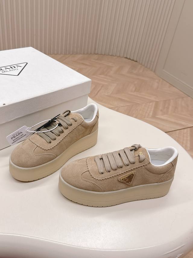 出厂价: prad代购级别:普拉达春夏新增高厚底休闲德训鞋运动板鞋面料:进口牛皮内里:原版内里鞋底:原版鞋底尺码:35-41码 40.41定制不退不换