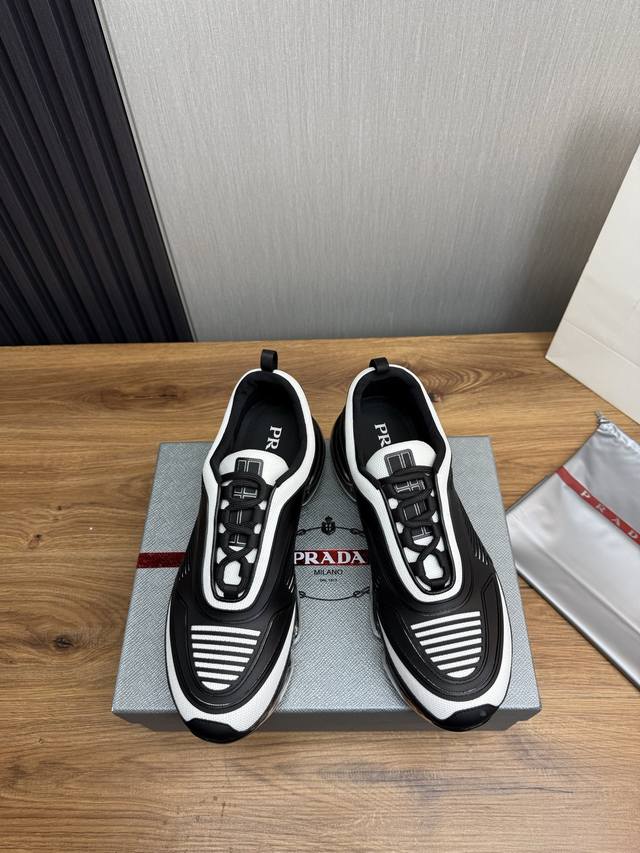 PRADA普拉达 男鞋专柜爆款,高品质出货官网同步 原版飞织滴胶面料+牛皮内里,1比1复刻 ,原厂抽空气垫原版底,38-45 偏大一码
