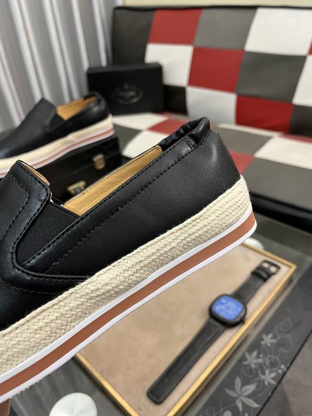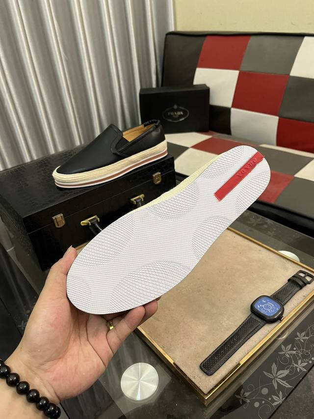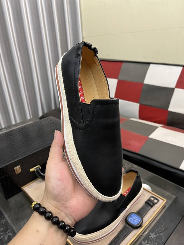 出厂价: Prada 普拉达新款男士薄底休闲鞋,款式时尚大方 头层磨砂牛皮打造 羊里柔软舒适透气 鞋身字母logo标 细节精工细作 轻质发泡底,时尚百搭! Si