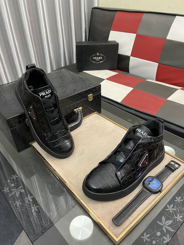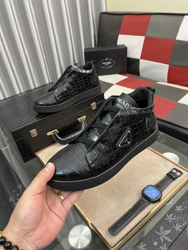 Prada普拉达 男鞋专柜爆款,官网同步,1高品质出货原版磨砂牛皮+牛皮内里,11复刻 ,原厂原版底,38-45 45定做不退换