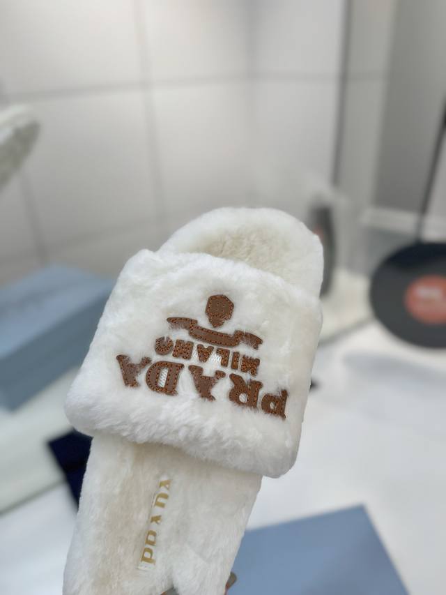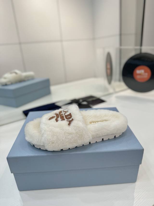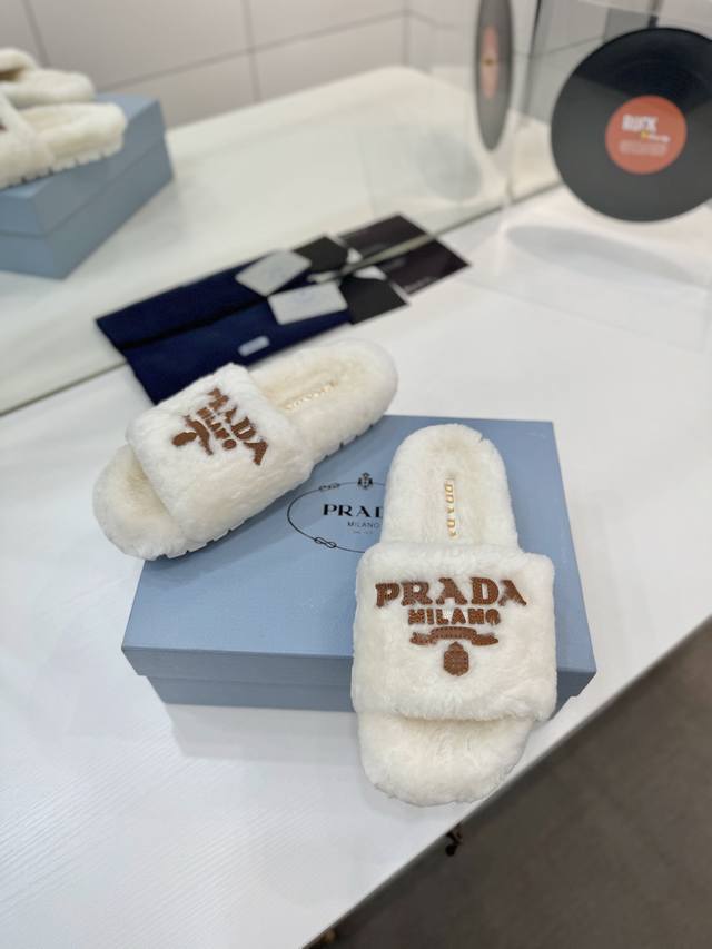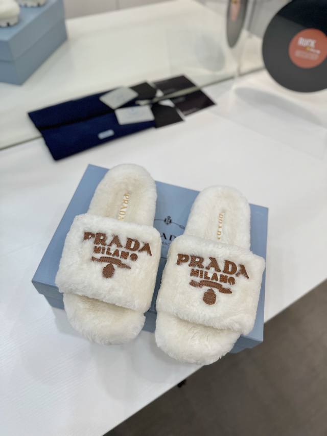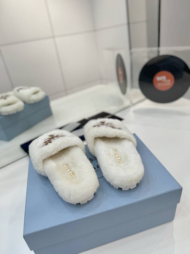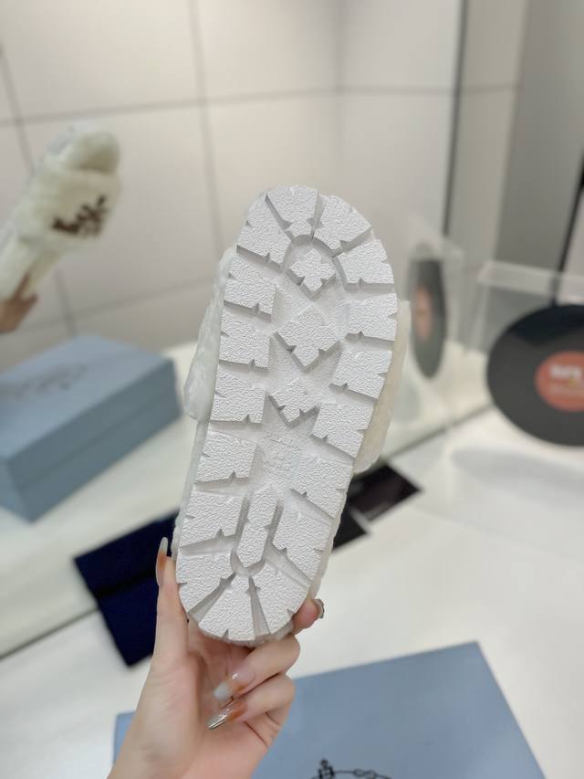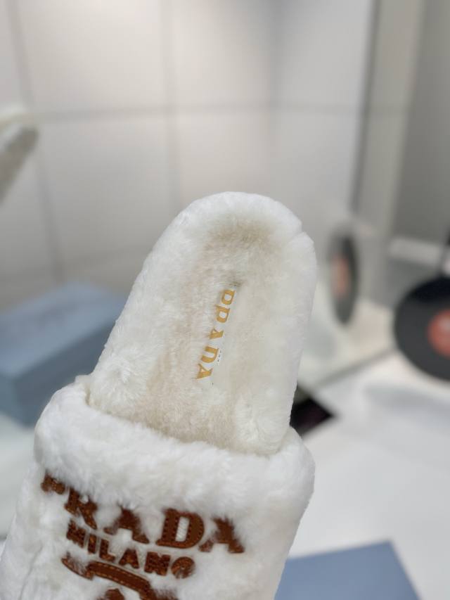 出厂价p 普拉达秋冬新款毛拖,毛毛鞋,可外穿 不管居家还是外穿都是品味的象征性! 秋冬搭配袜子 那更是太绝太绝了 鞋面:进口澳洲真羊毛 手感细腻柔软丝滑 大底: