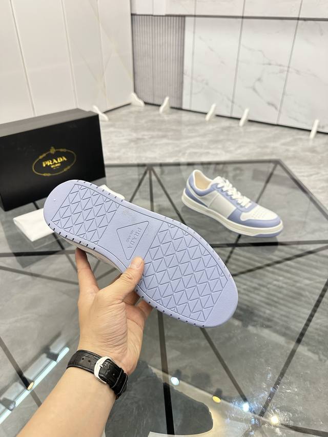 G036Prada 普拉达春夏秀款薄底德训鞋 25Ss秀款出境率最高的单品 鞋面麂皮有肌理感,内里羊皮包裹,软软糯糯的 鞋垫加厚小羊皮,踩上去无比舒适,有支撑感
