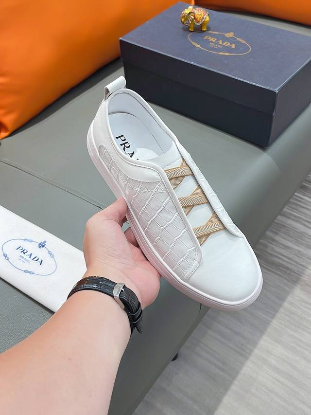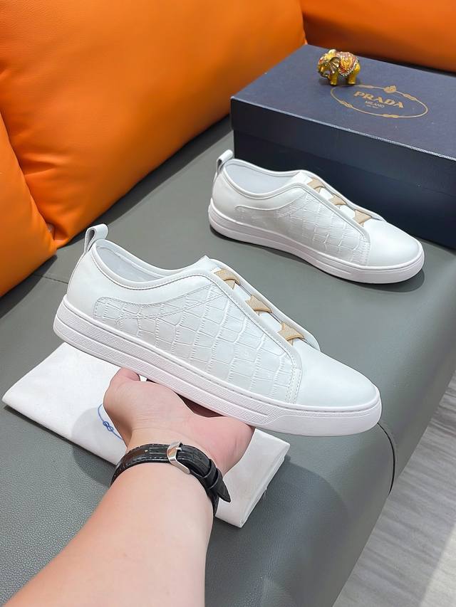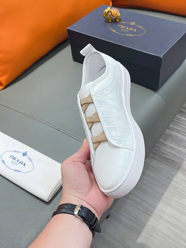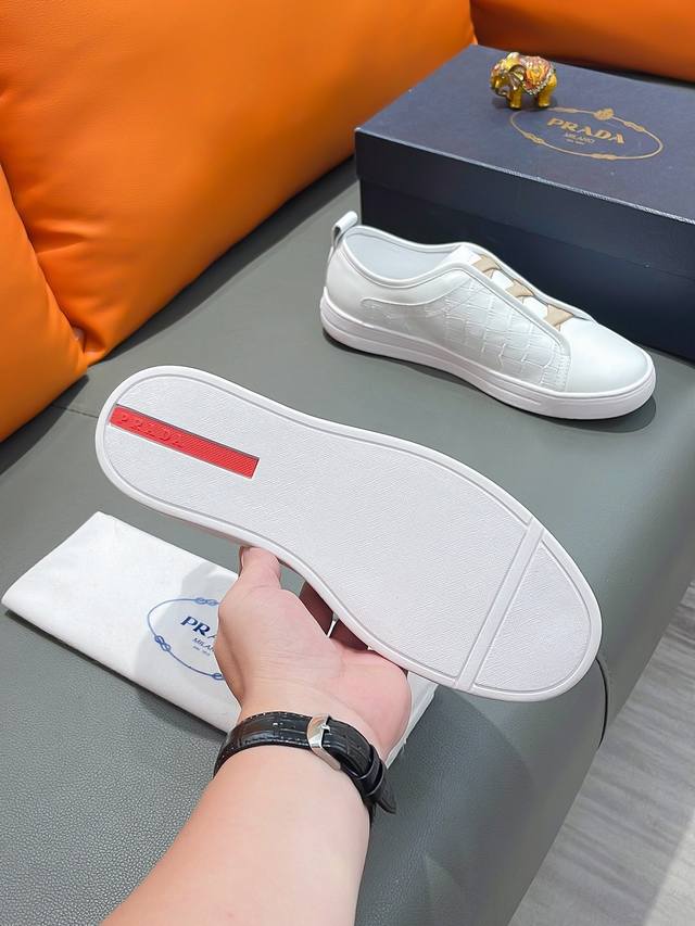 商品名称:PRADA 普拉达 正规码数: 38-44 休闲鞋 商品材料:精选 牛皮鞋面,柔软羊皮垫脚,原厂特供大底。