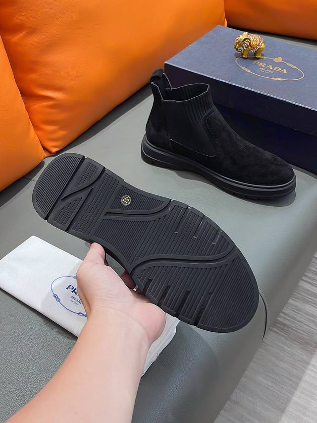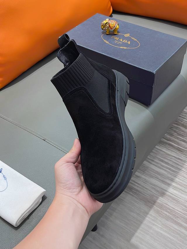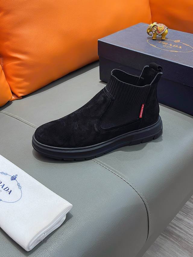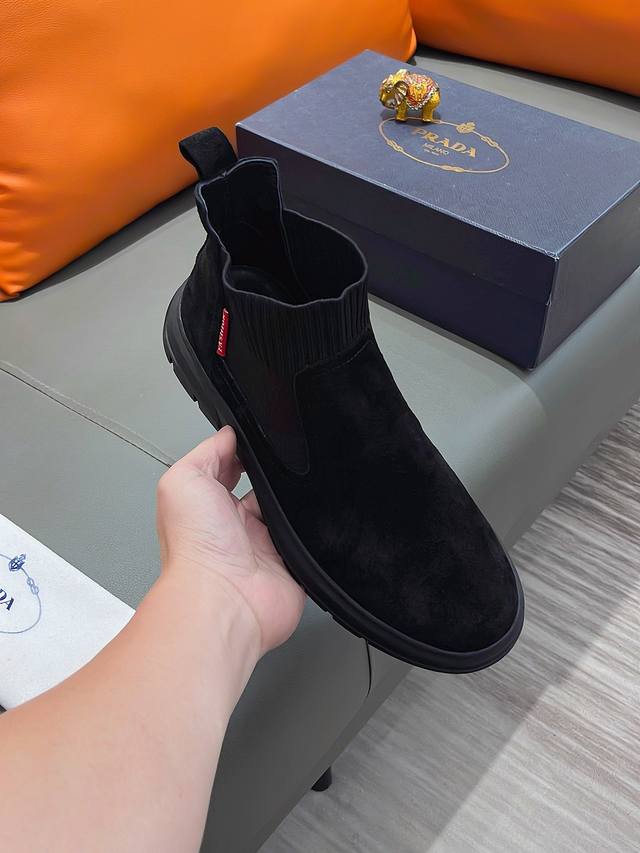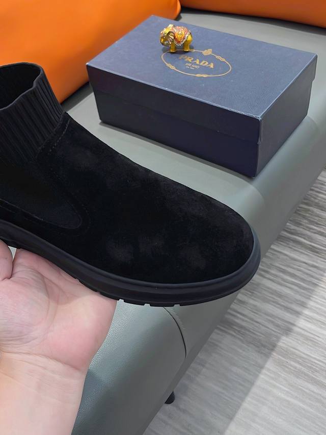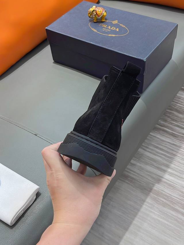 商品名称:Prada 普拉达 正规码数: 38-44 高帮鞋 商品材料:精选 牛皮鞋面,柔软羊皮垫脚,原厂特供大底。
