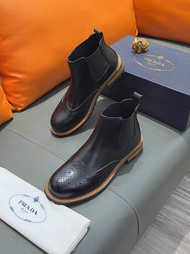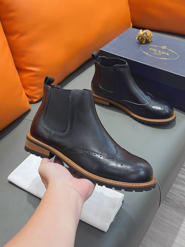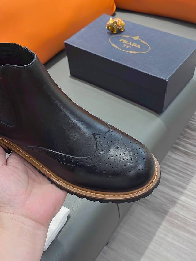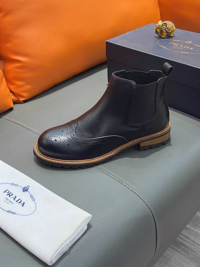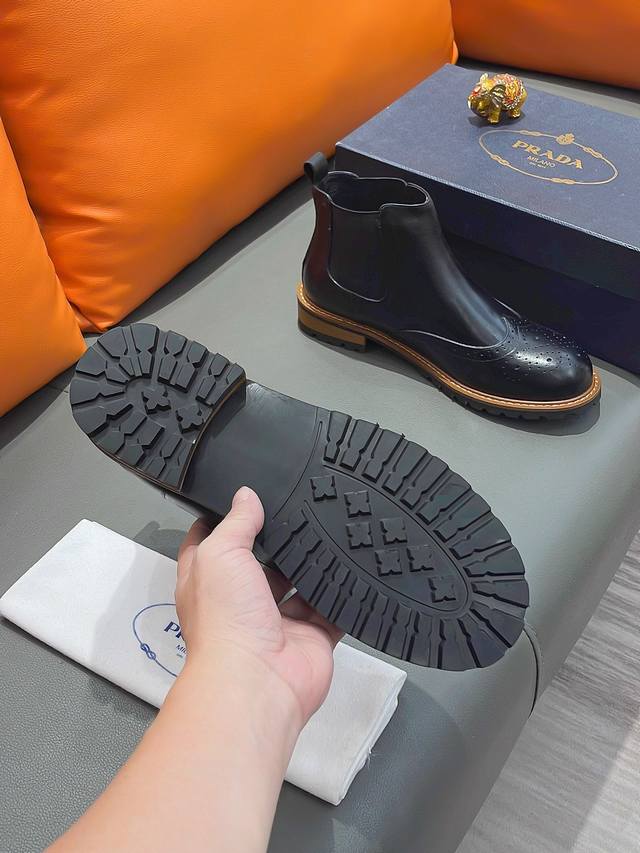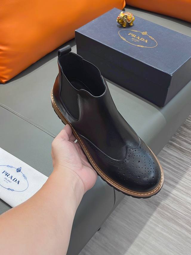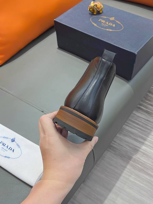 商品名称:Prada 普拉达 正规码数: 38-44 高帮鞋 商品材料:精选 牛皮鞋面,柔软羊皮垫脚,原厂特供大底。