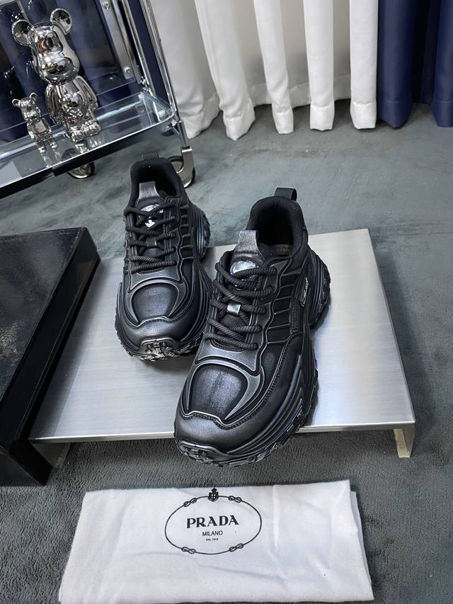 普拉达新款休闲运动板鞋高版本上图必卖,時尚百搭男鞋,鞋面进口牛皮配原版布料,透气网布内里,精细做工。TPU原厂大底,...