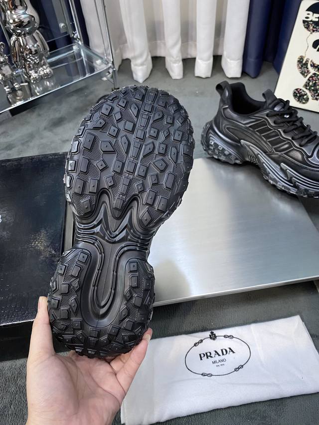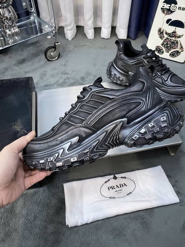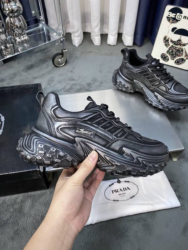 工厂价 全牛皮 普拉达 新款男士真皮运动鞋,市面最高版本...