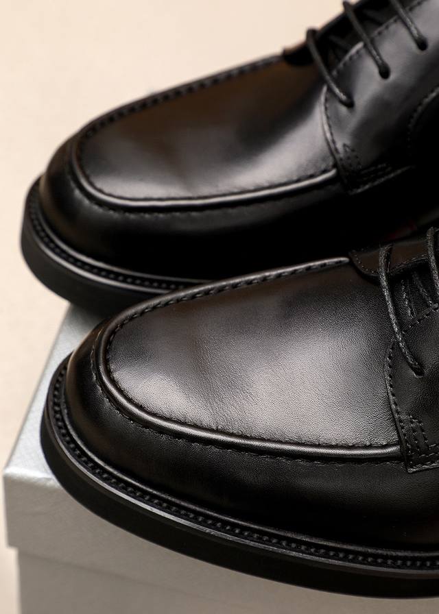 / 商品商标:Prada 普拉达 休闲皮鞋 正码码数: 39-44 38.45.46订制 商品材料:精选 进口头层小牛皮鞋面,进口水染牛皮内里。强烈立体视觉效果,原