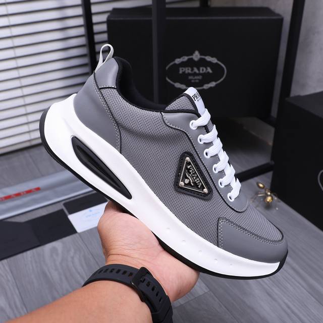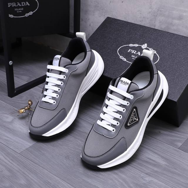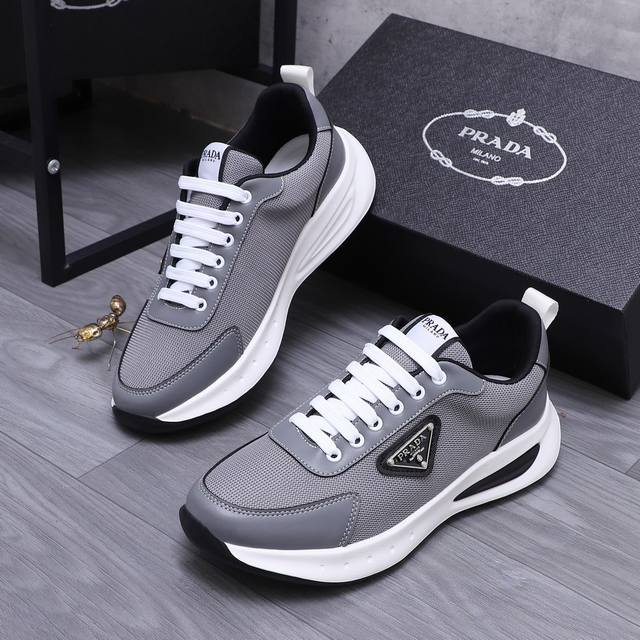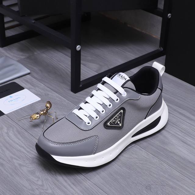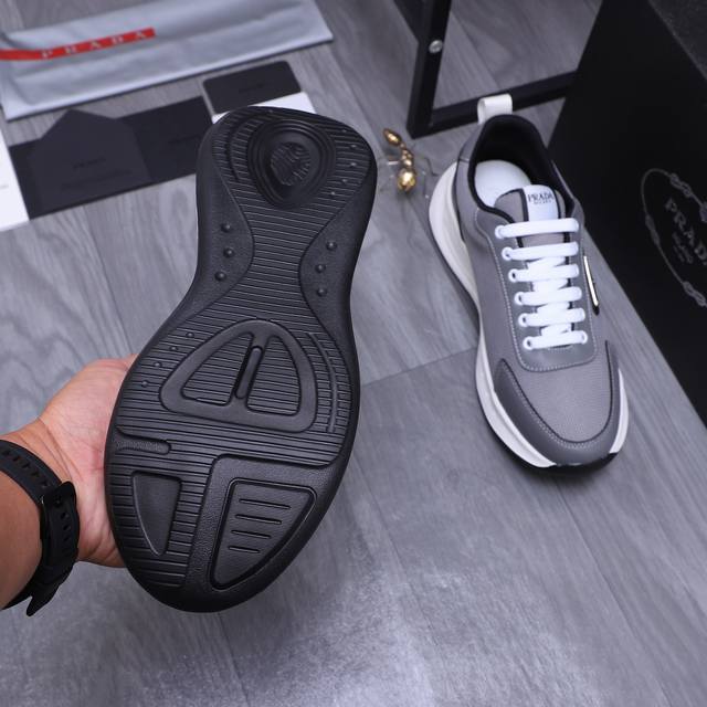 商品商标:Prada 普拉达 休闲鞋 正码码数: 38-44 45订做不退换 商品材料:精选 牛皮拼接鞋面 透气网内里 橡胶大底