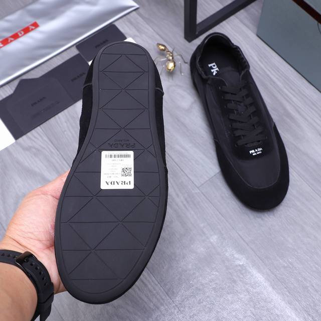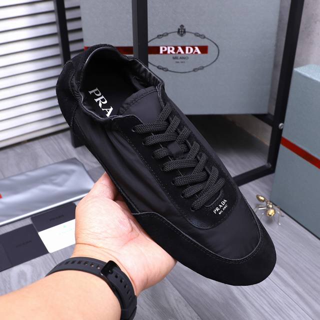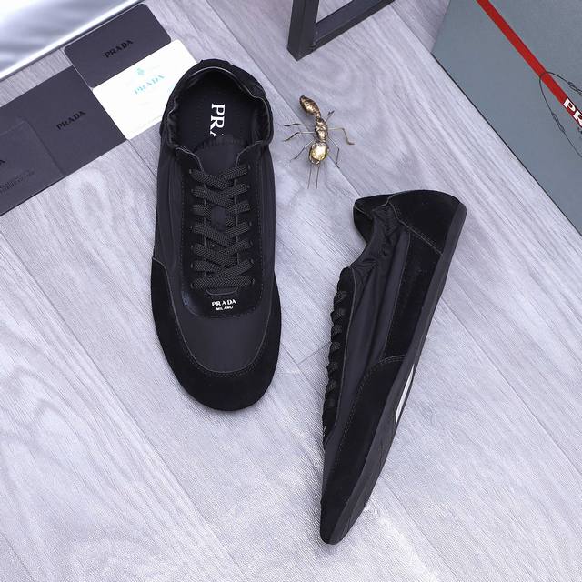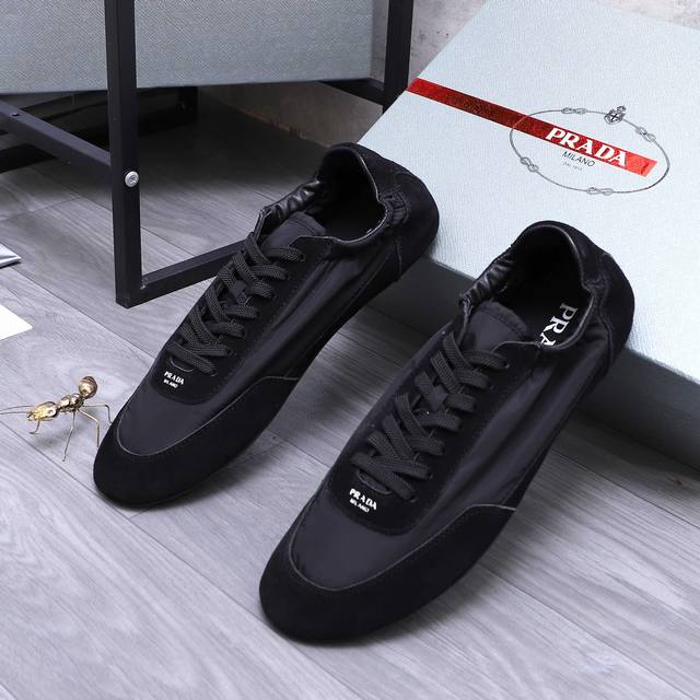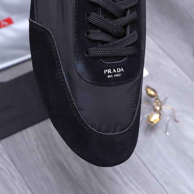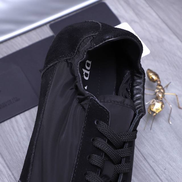 商品商标:PRADA 普拉达 轻便休闲鞋正码码数: 38-45商品材料:精选 磨砂牛皮拼接布面 羊皮内里 原版大底