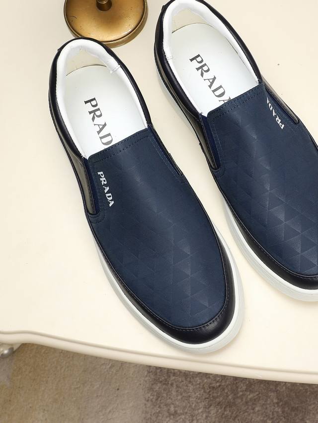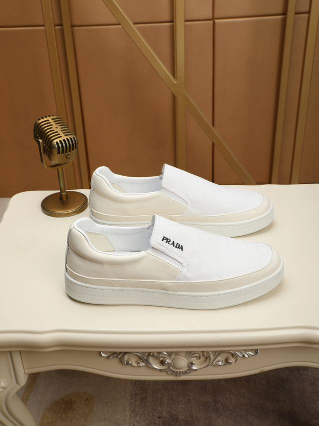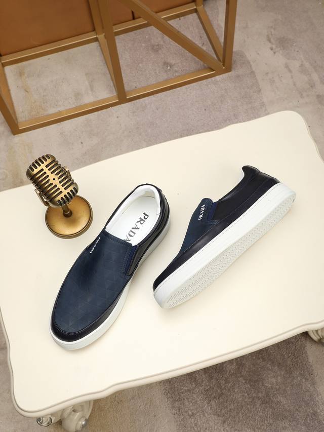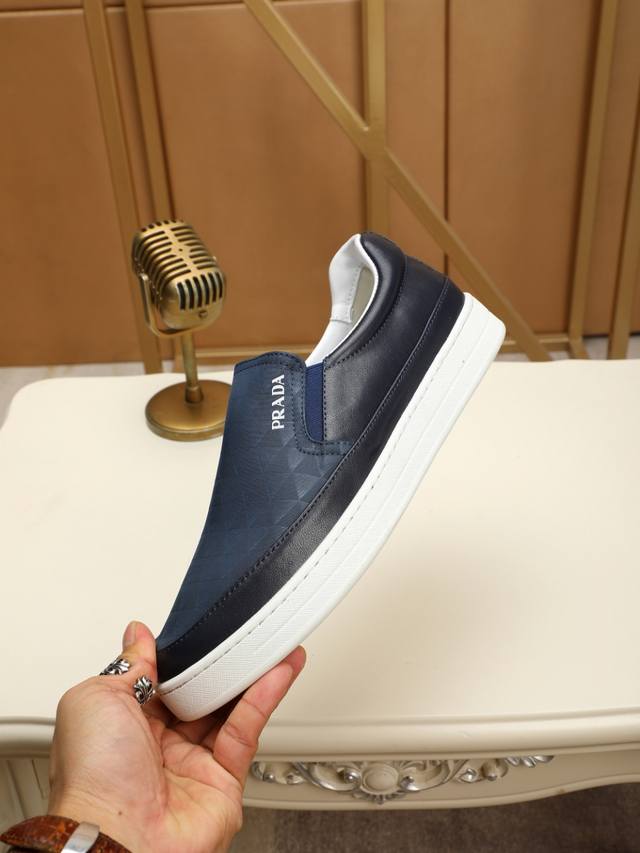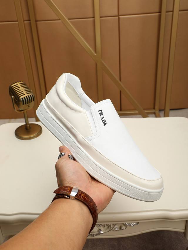 Prad*普拉达2024春夏新品男士高端运动鞋,这款运动鞋时尚百搭,简洁现代,融合运动风格和精致细节。选用原版环保皮料打造,...