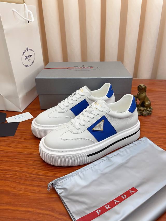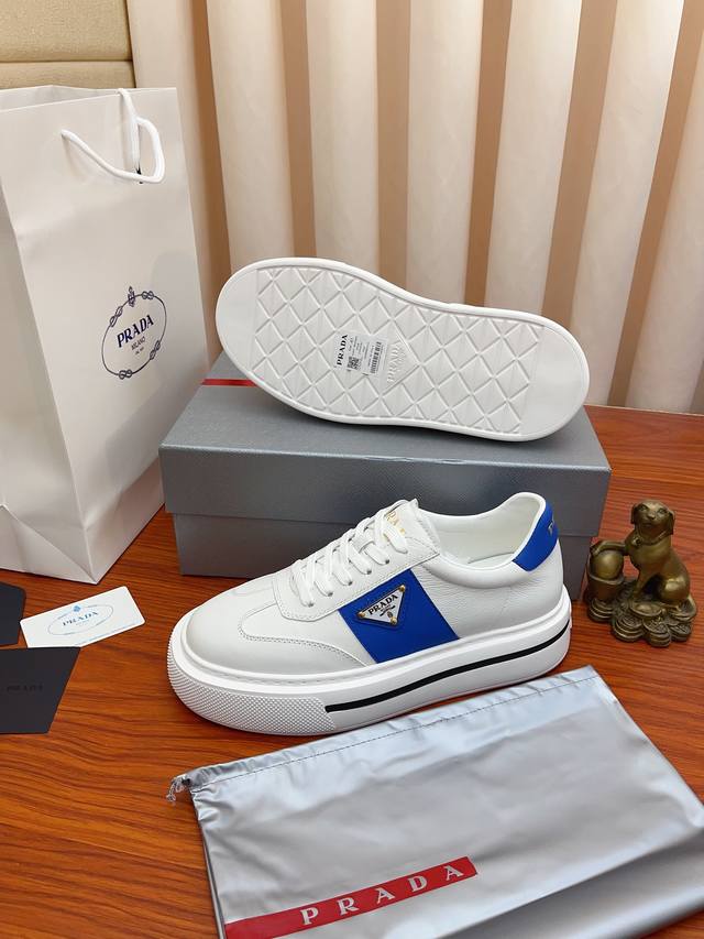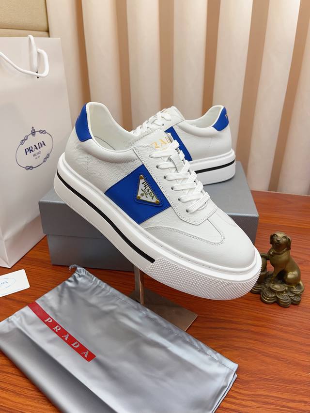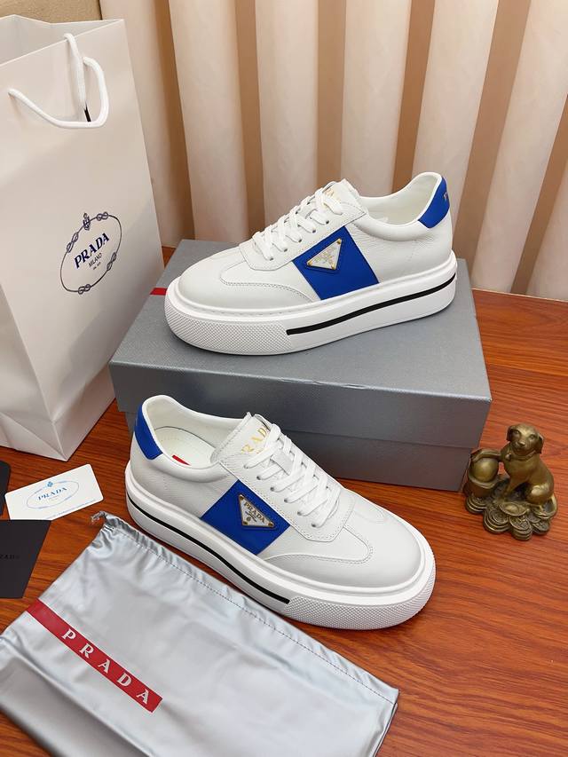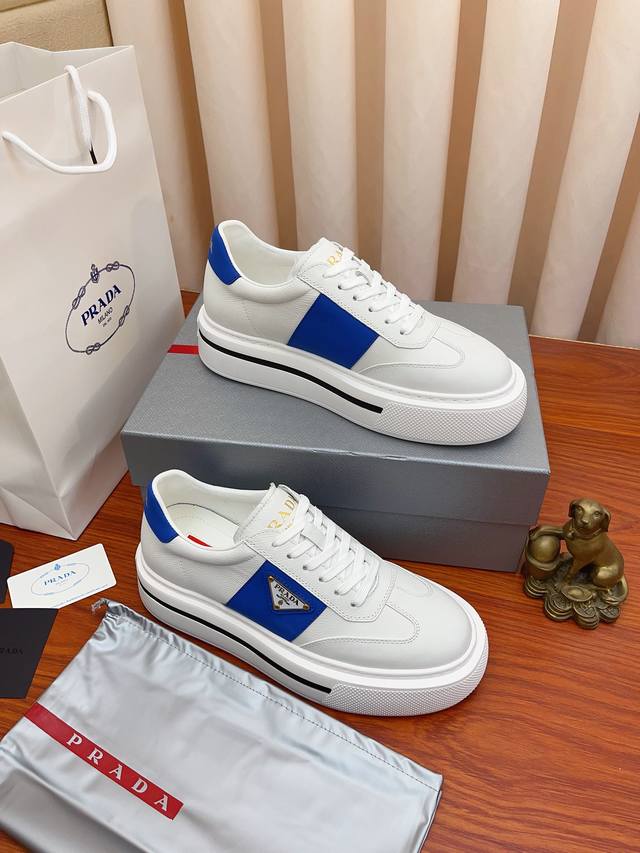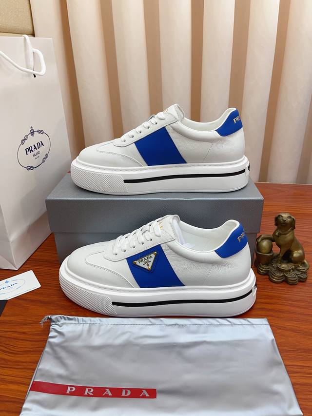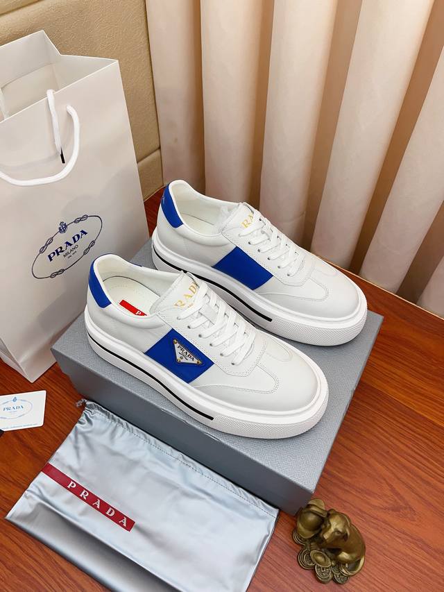 Prad*普拉达 专柜爆款男鞋,官网1:1制作,进口牛皮面料拼接,牛皮内里 原厂特供原版底,38-45 45订做不退换