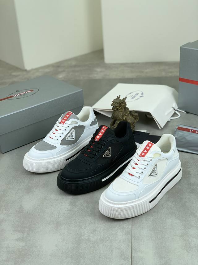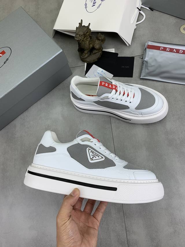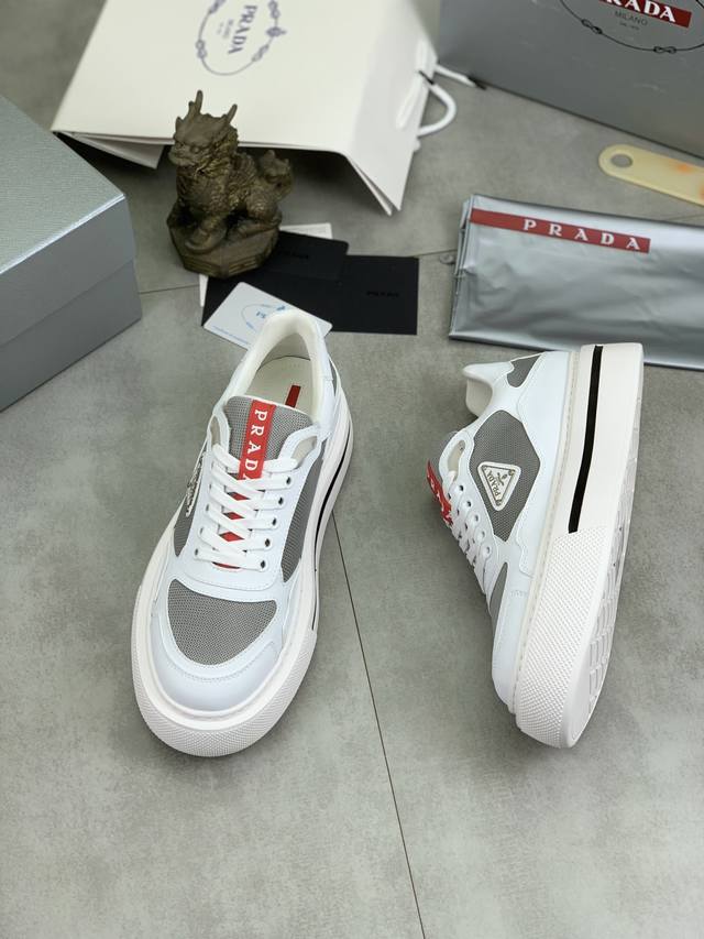 Prada 普拉达 秋冬季皮里男士系带运动鞋莞产顶级猛货 进口纳帕牛皮鞋面凸起层次设计感 轻盈透气 柔软舒适...