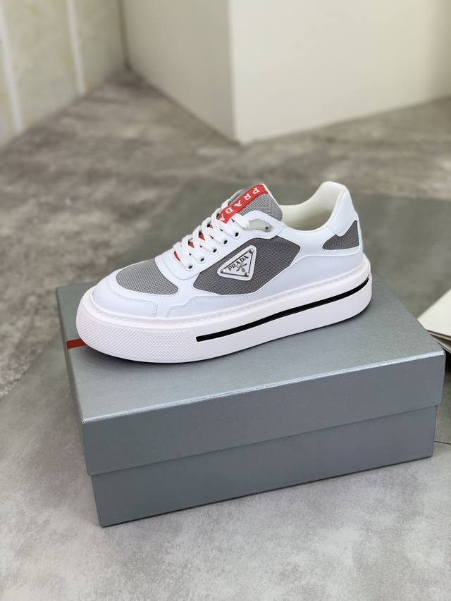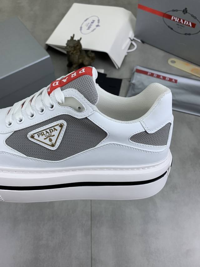 普拉达prada顶级版运动鞋鞋面进口飞织面料拼接漆皮,羊皮内里+牛皮踮脚,耐磨防滑轻便大底,男女同款:码数:35-47码,...