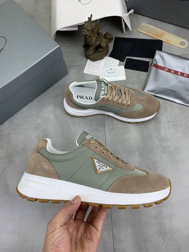 工厂价 实价 顶级版本 官网爆款上市, 潮牌 普拉达PRADA 主推爆款,前卫百搭时尚男鞋私版开模,牛皮面拼接1:1复刻..时尚干脆、原版进口牛皮内里牛皮垫脚;