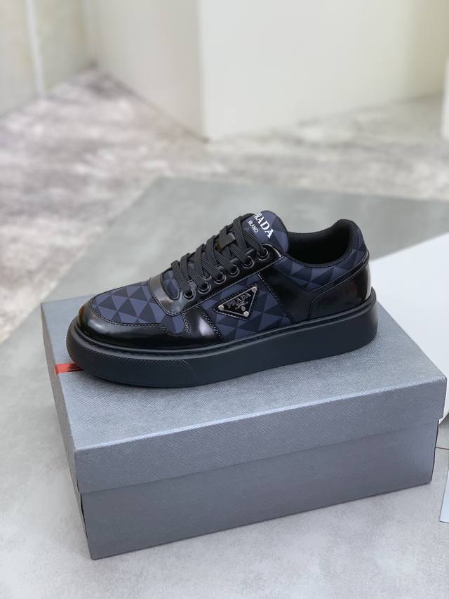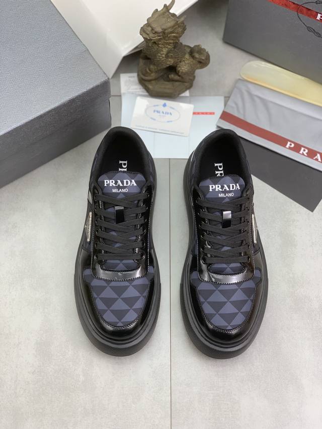 工厂价 实价 高品质牛里 PRADA普拉达 新款男鞋官网最新款上市了1:1复制,香港专柜同步,走秀同台;全部采用进口飞织鞋面进口透气面料配牛皮内里、橡胶大底原版1:1防滑耐磨;着脚舒适、款式耐看,做工精细,配以简洁利落的鞋楦,彰显男人的果敢和硬朗,码数38一44;黑色 白色颜色选 配全套包装