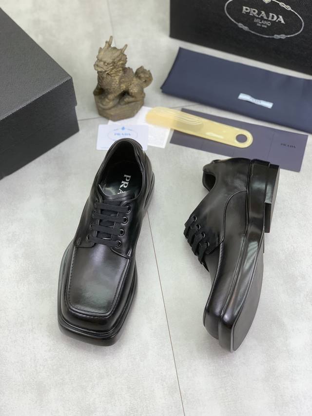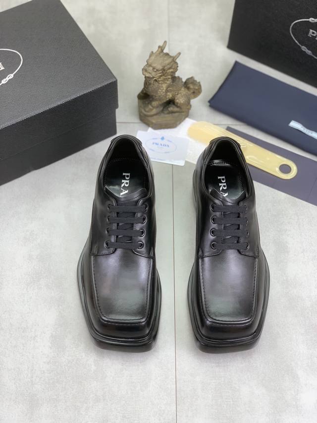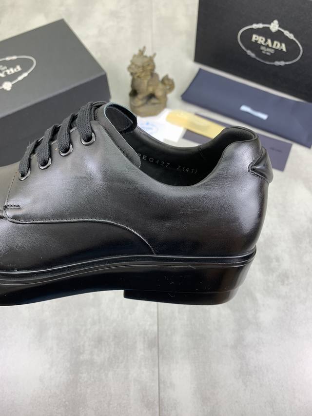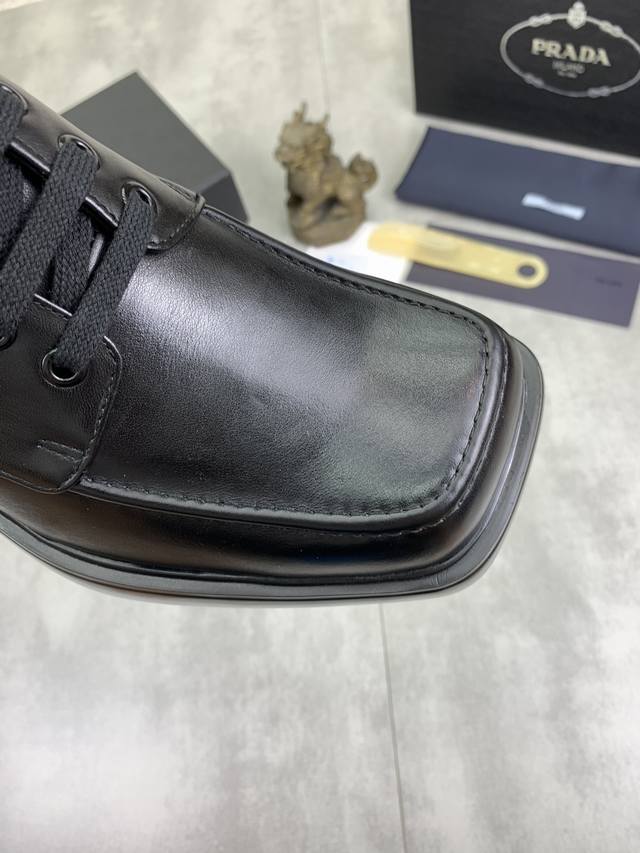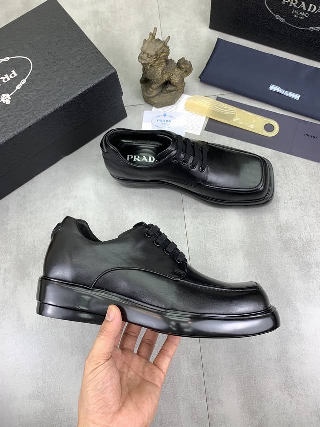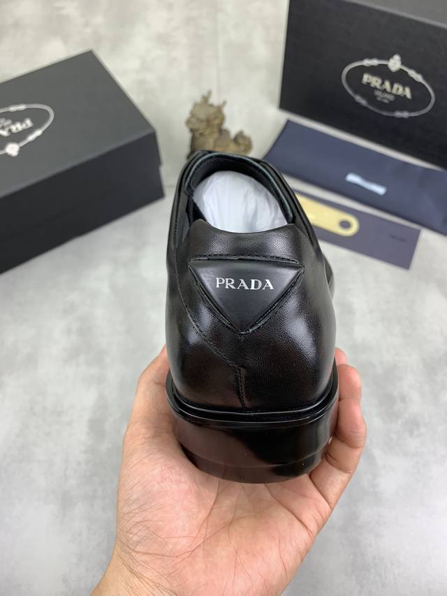/ 工厂价 实价 高品质 官网经典爆款上市,百年不过时, 潮牌 普拉达PRADA 主推爆款,前卫百搭时尚男鞋私版开模,牛皮面拼接1:1复刻油边处理..时尚干脆、原版