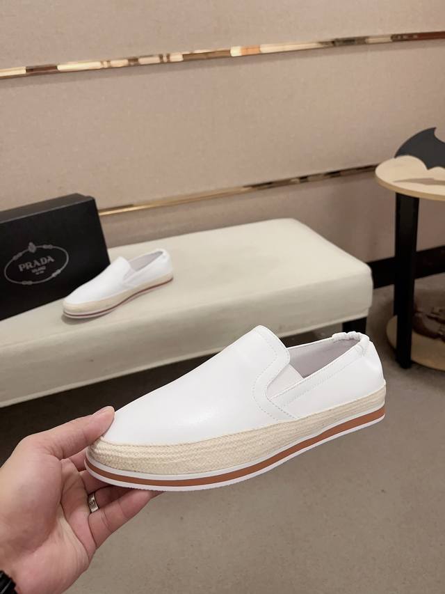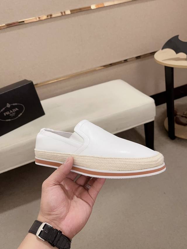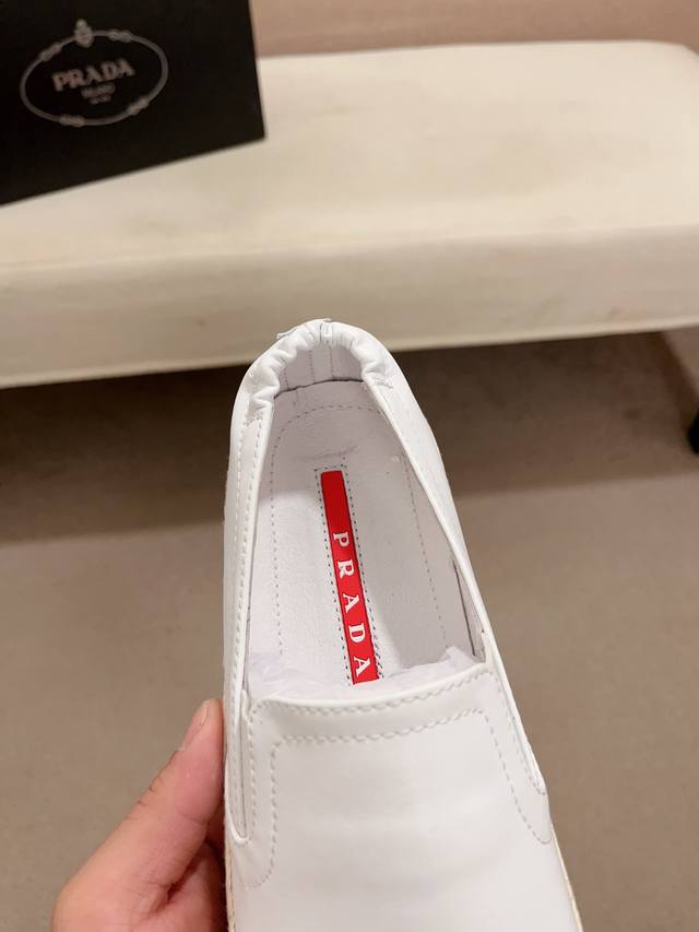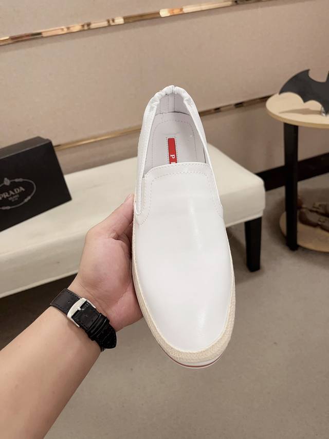 工厂价 新款prada 普拉达 专柜同步上市, 新款男鞋、面料精选头层牛皮制作而成。内里:全牛皮内里。高端气垫开模防滑橡胶大底,精美线条、简约大气,上脚舒服上挡次、休闲旅游。码数:38一44