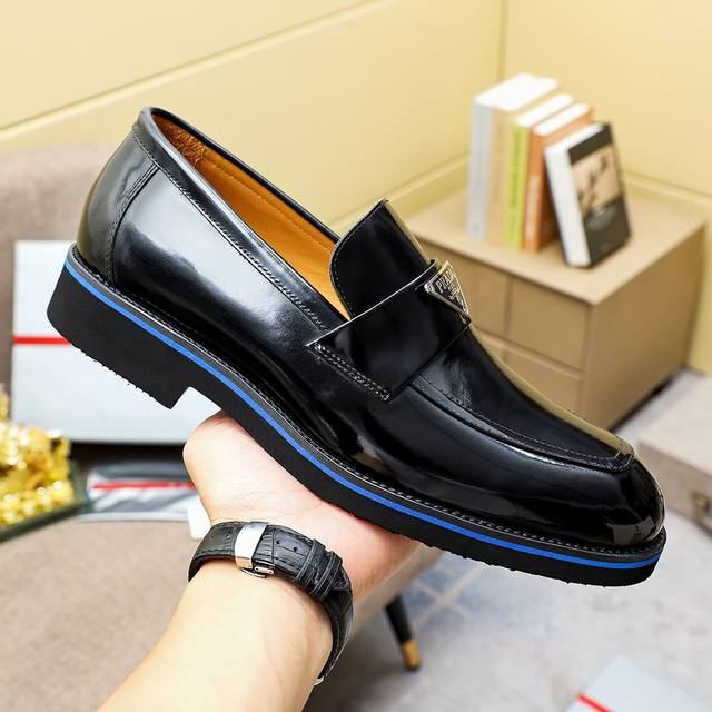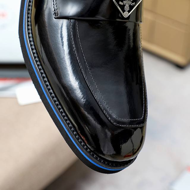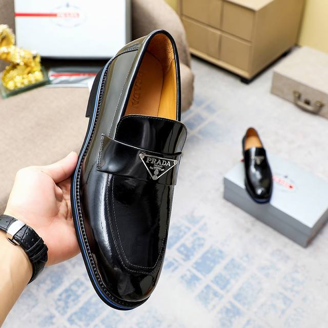工厂价 Prad*普拉达 专柜爆款男鞋,官网同步更新 进口牛皮鞋面+牛皮内里原厂特供原版底,38-44 45订做不退换