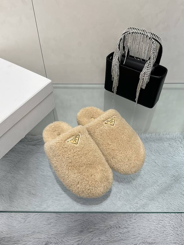最新系列!Prada 普拉达2024秋冬季新款毛拖鞋 三角扣面包包头半拖鞋 编织毛系列、最新走秀系列 经典升级 舒适度与时髦度并存 每个颜色搭配都好看,设计搭配不同风格需求