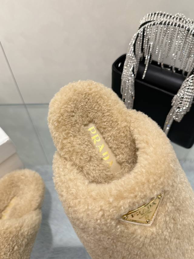 工厂价: 最新系列!Prada 普拉达2024秋冬季新款毛拖鞋 三角扣面包包头半拖鞋 编织毛系列、最新走秀系列 经典升级 舒适度与时髦度并存 每个颜色搭配都好看