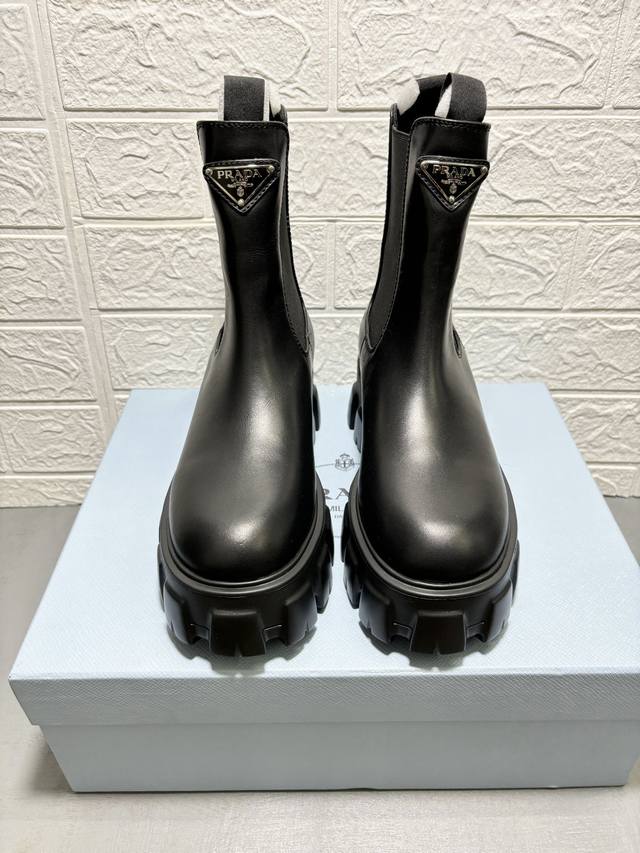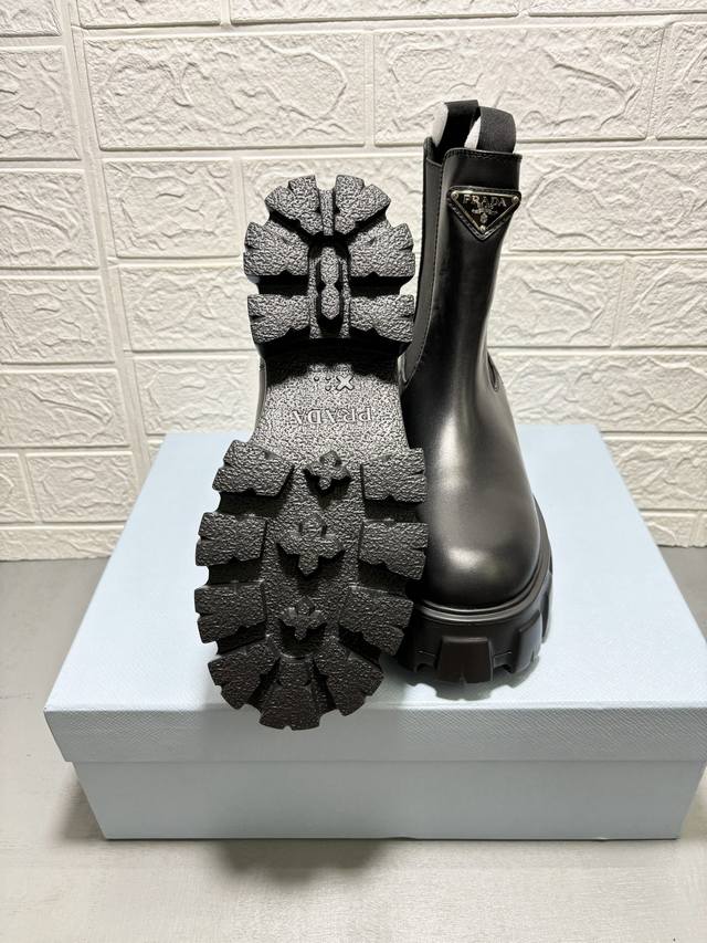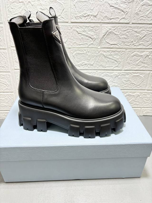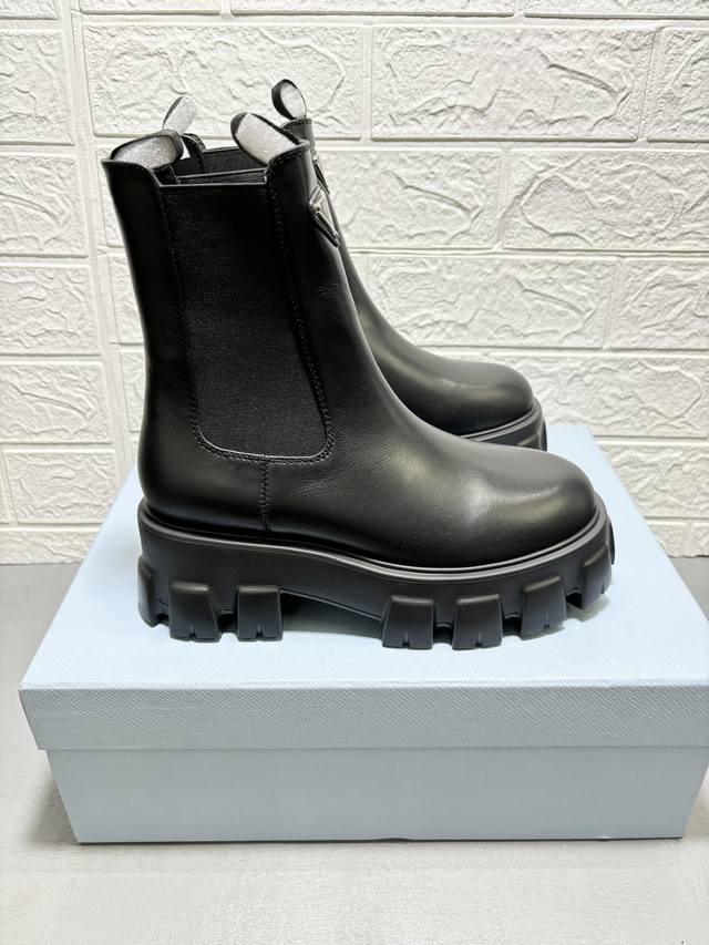/ 工厂价: 重磅推出普拉达短靴系列,PRADA早秋冬T台走秀网红同款"梦造不夜城",Prada能在重要场合用得上了,清新风带点小贵气的感觉,上脚非常完美穿搭配上此