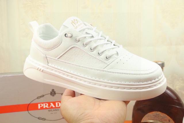 工厂价 高品质普拉达 官网最新款 男士休闲时尚男鞋四季爆款版型简洁大气 潮男专属 独有的官网最新品牌元素元素鞋面优质进口牛皮 ,透气羊皮内里!时尚又大方原版轻质发泡大底!实物拍摄38-43